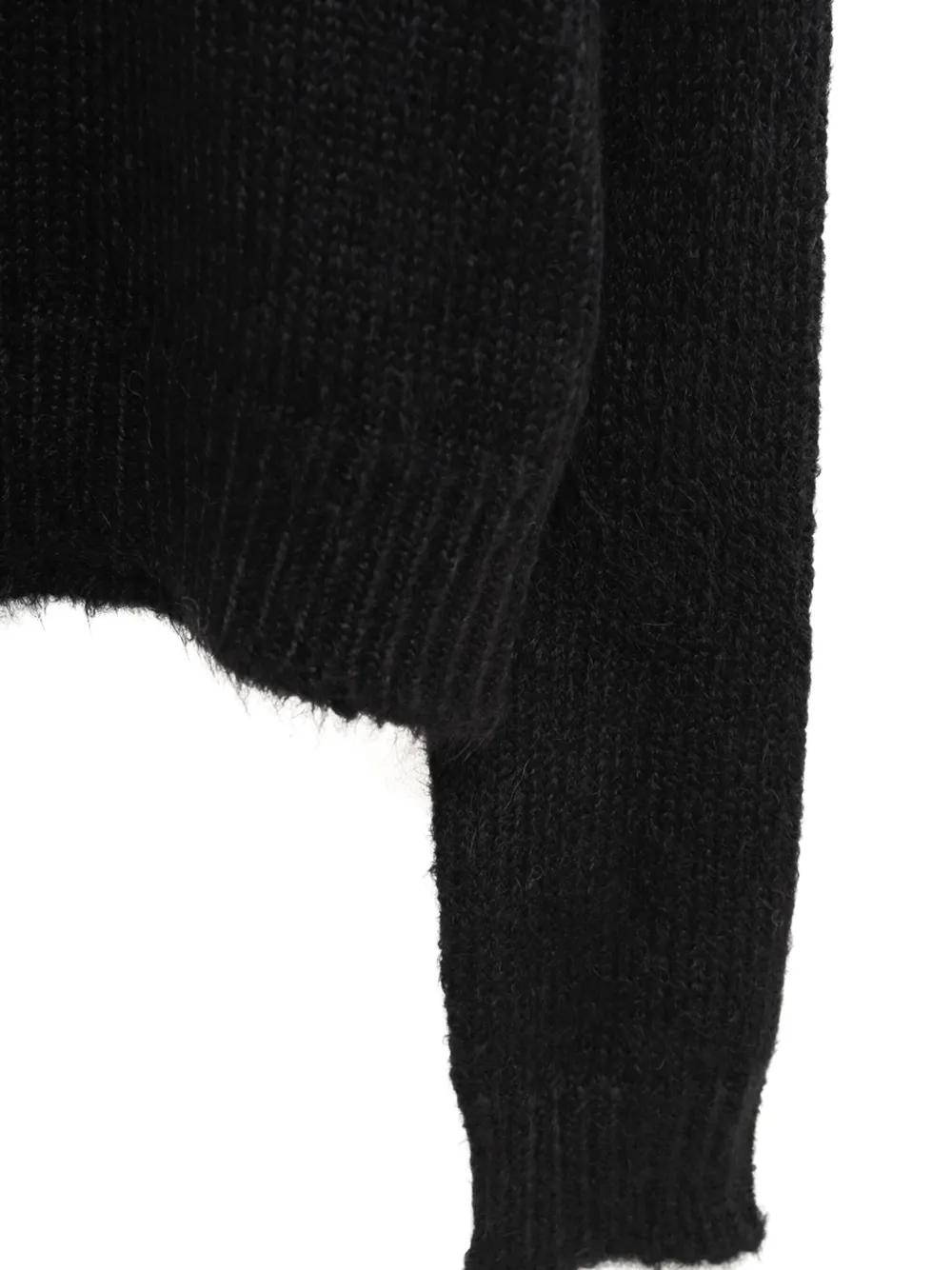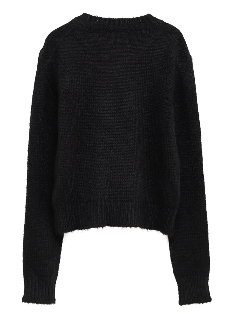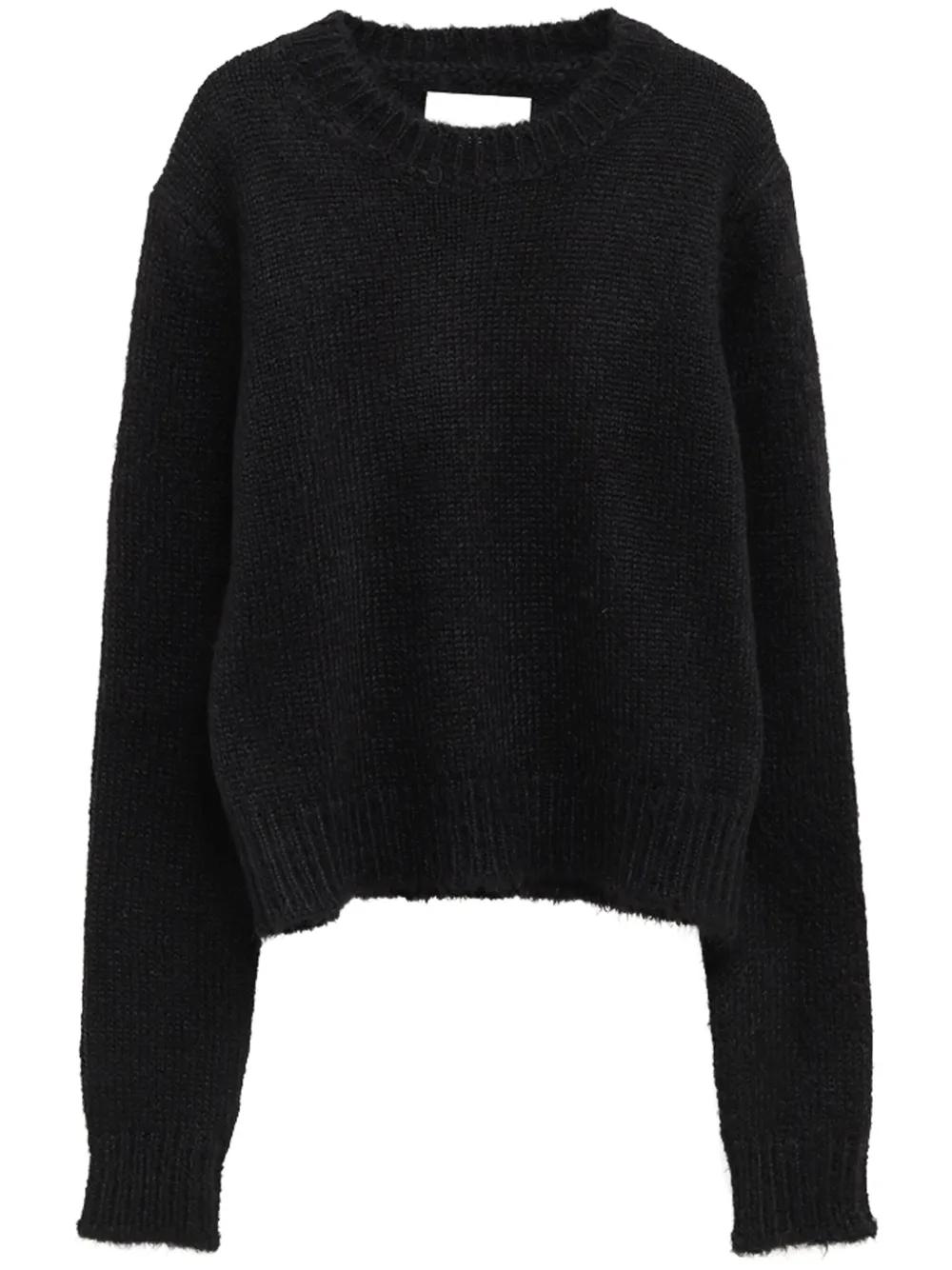 black alpaca wool-blend brushed finish ribbed knit crew neck long sleeves straight hem