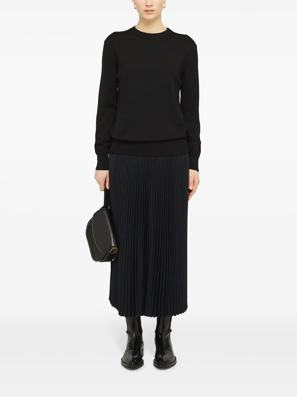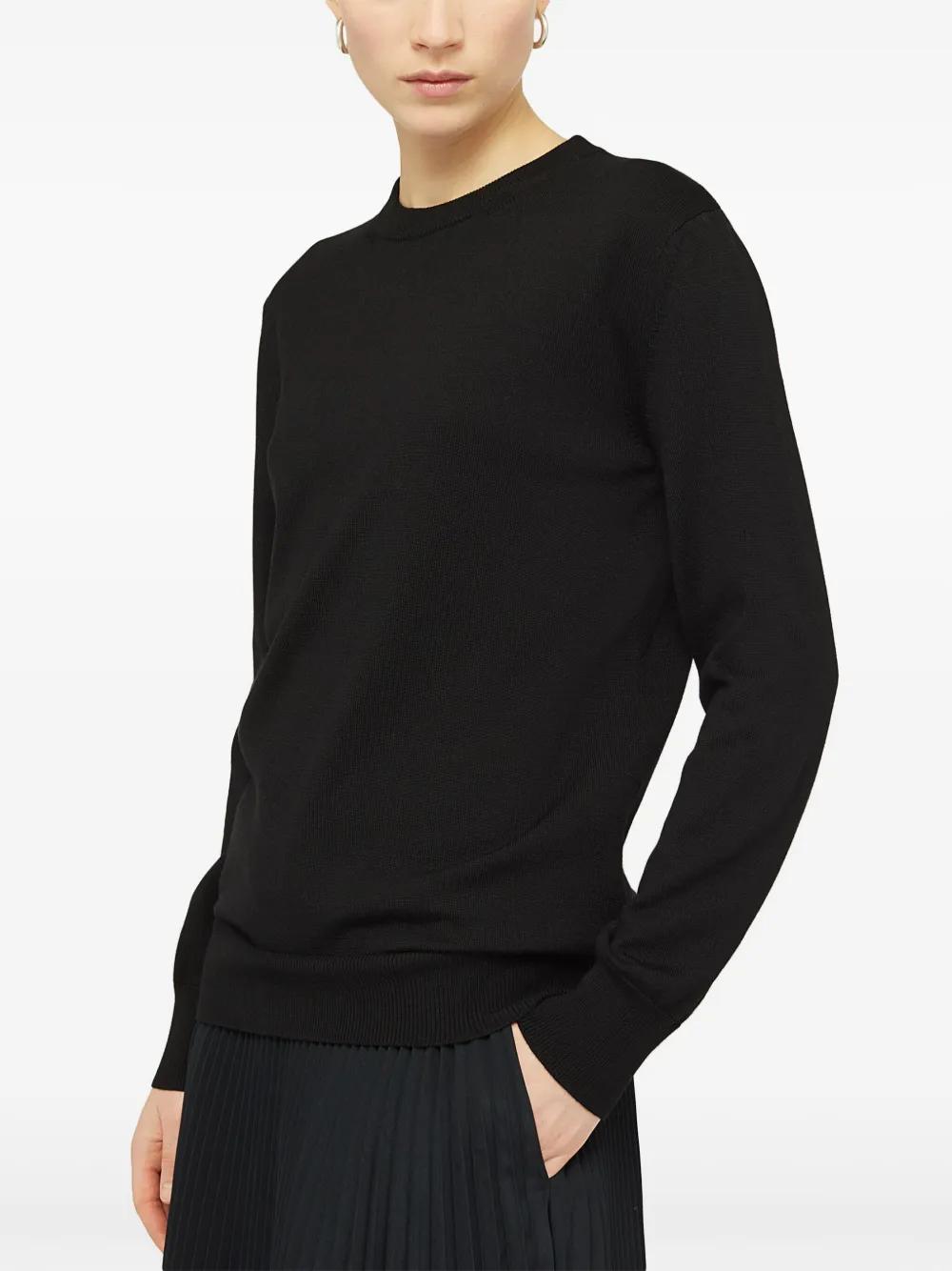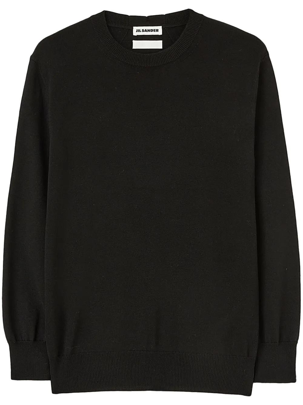 black wool knitted construction ribbed trim crew neck long sleeves straight hem
