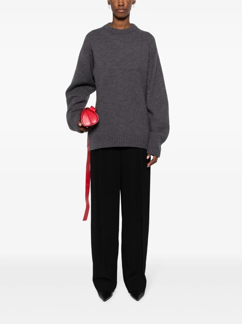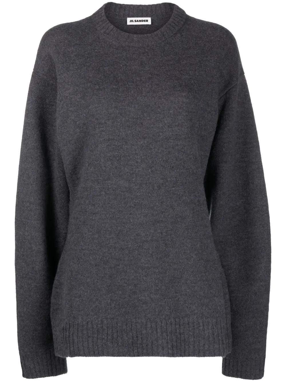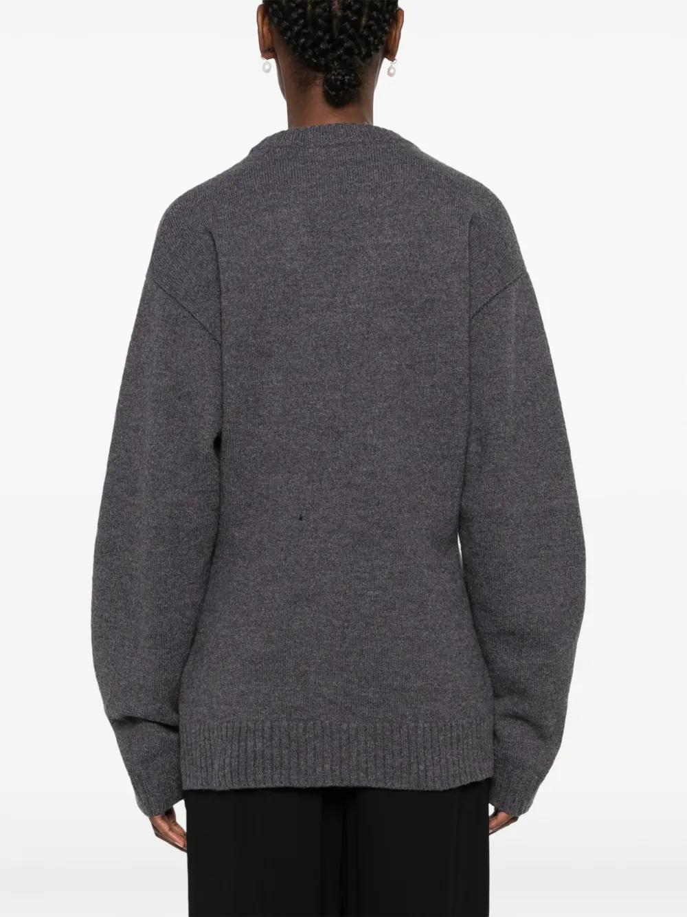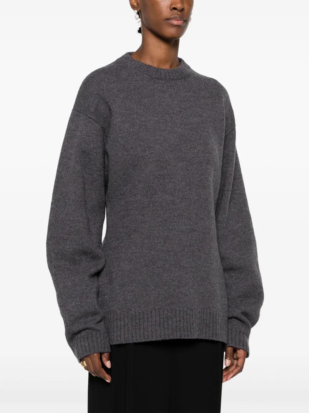 medium grey wool knitted construction mélange effect crew neck drop shoulder extra-long sleeves ribbed cuffs and hem