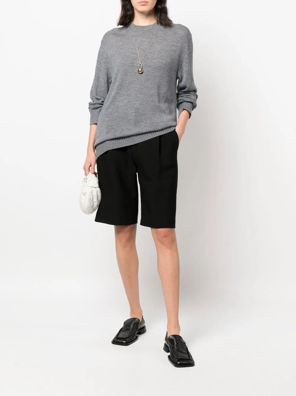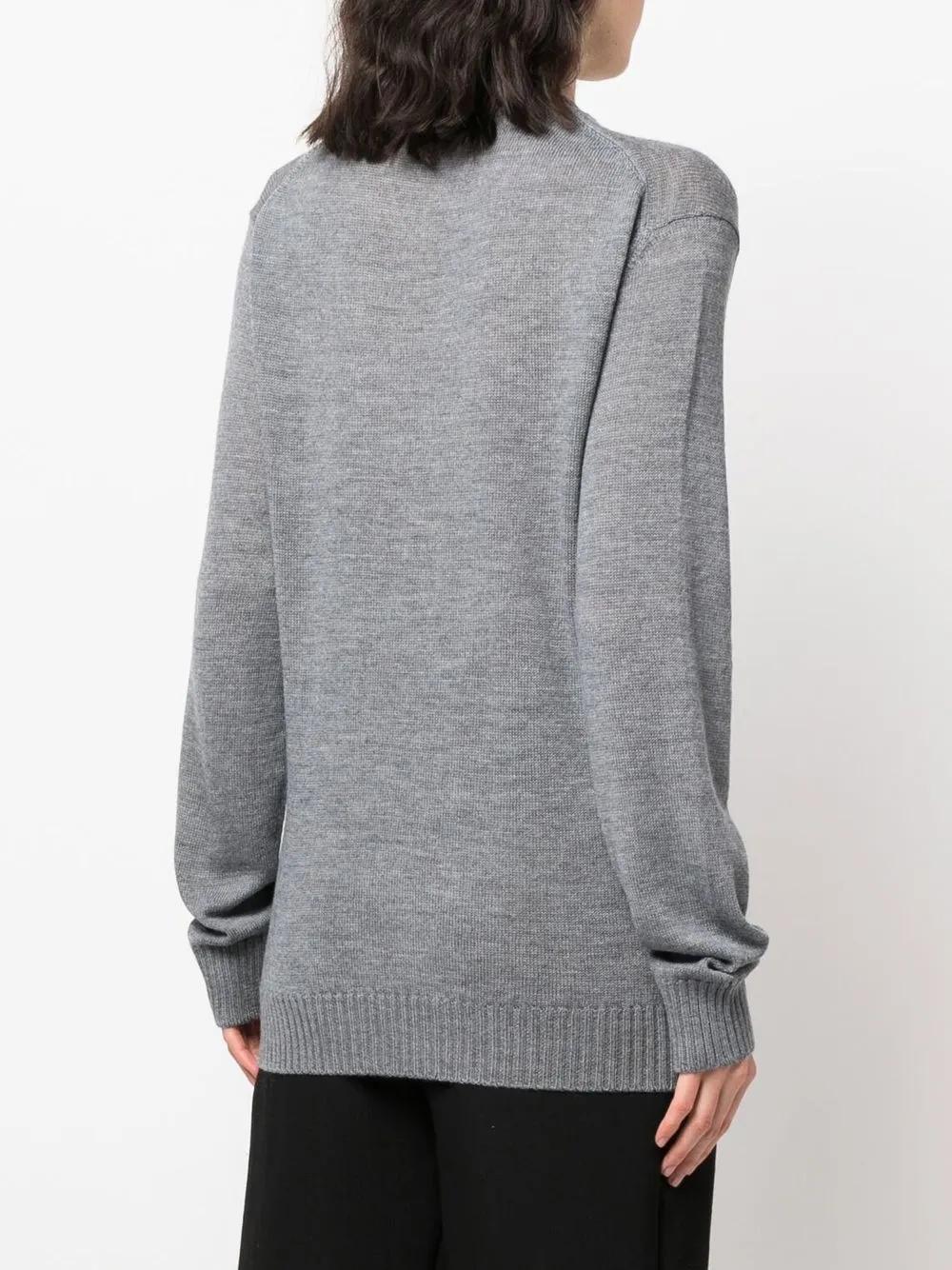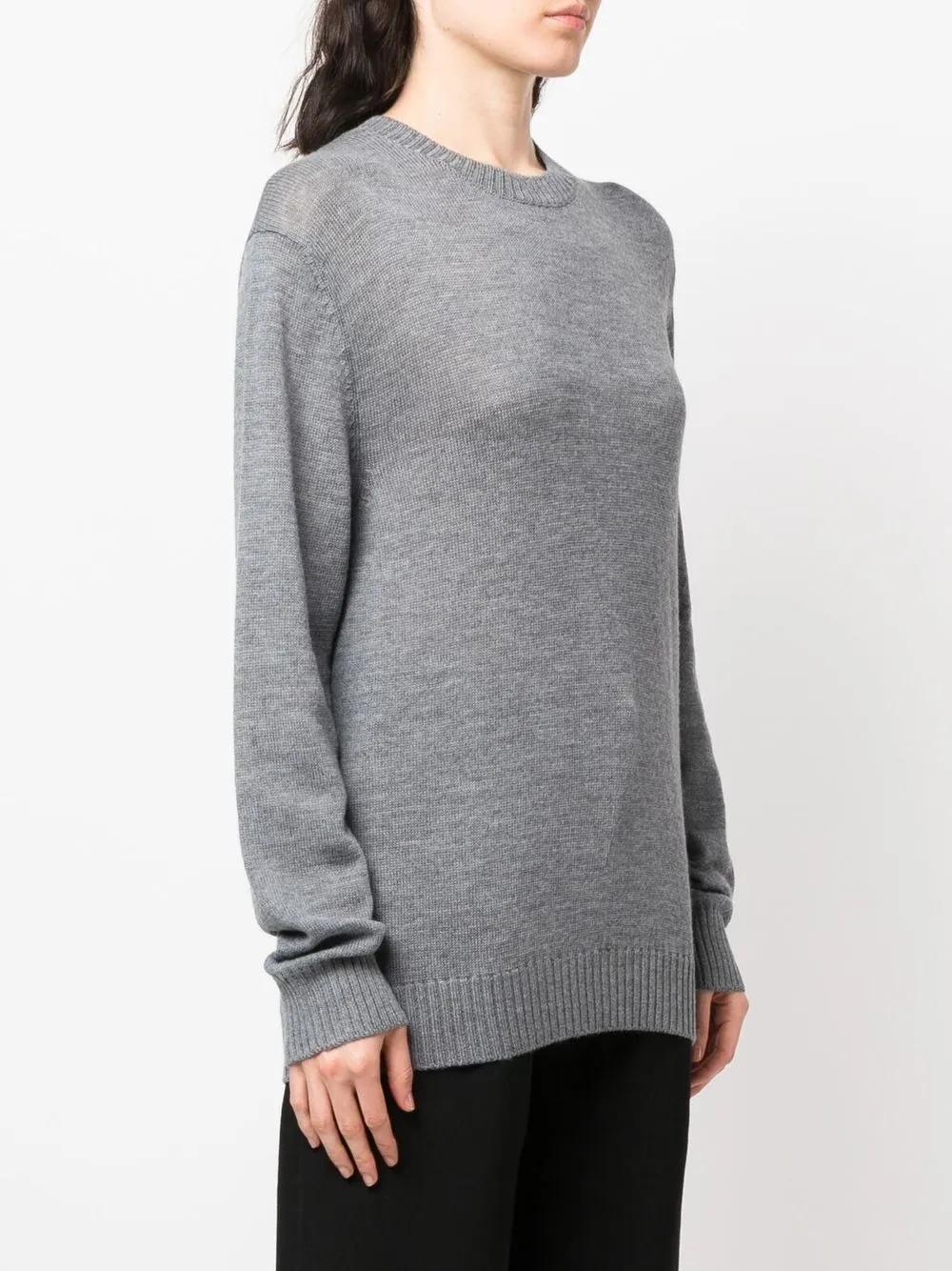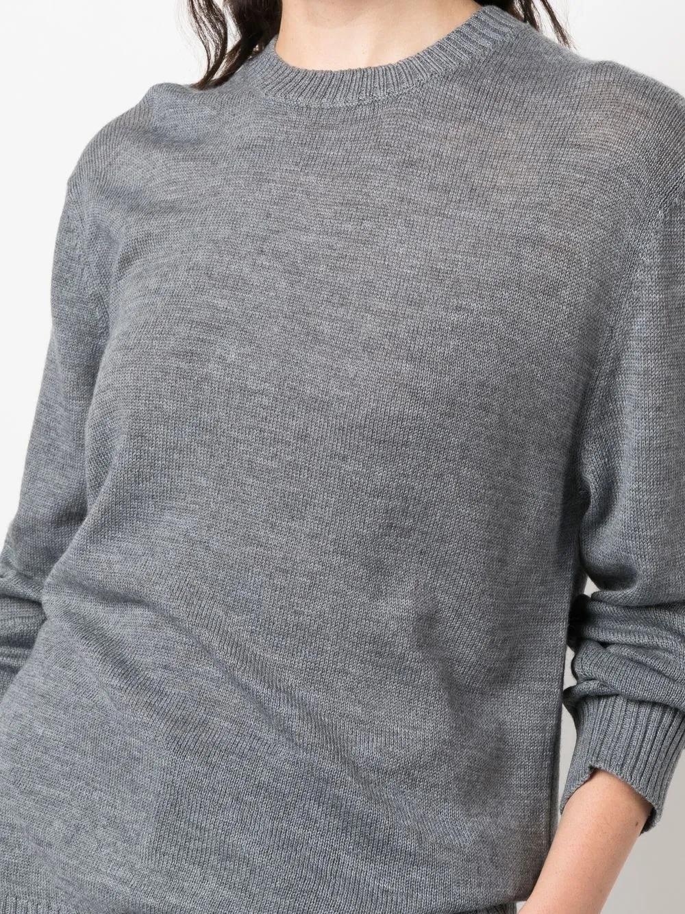 grey wool fine knit crew neck long sleeves straight hem fitted-cuff sleeves ribbed trim