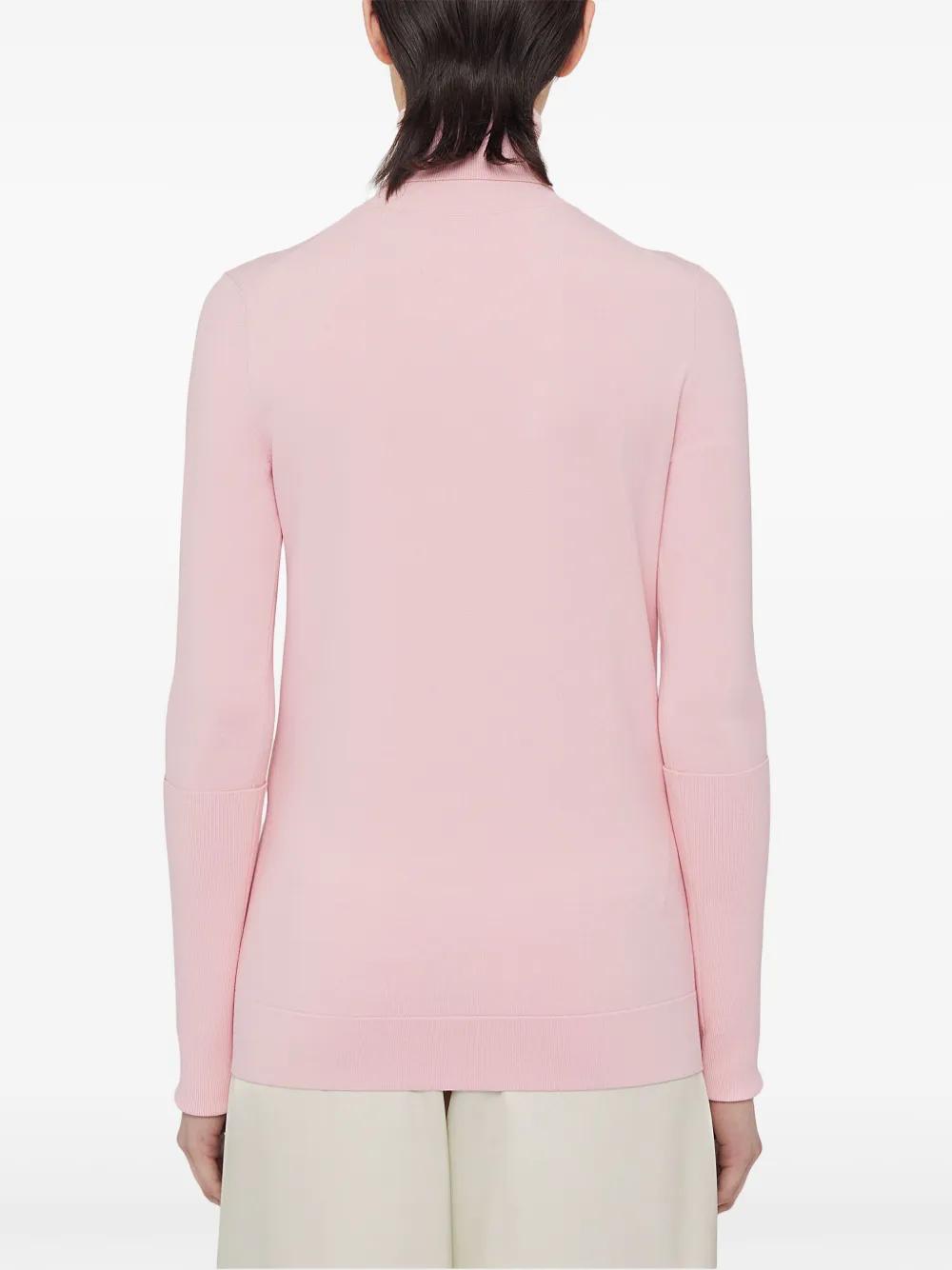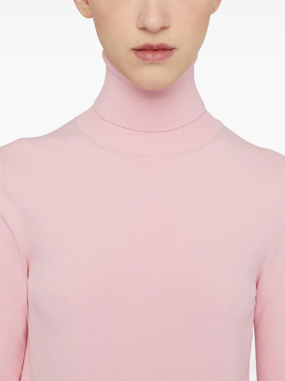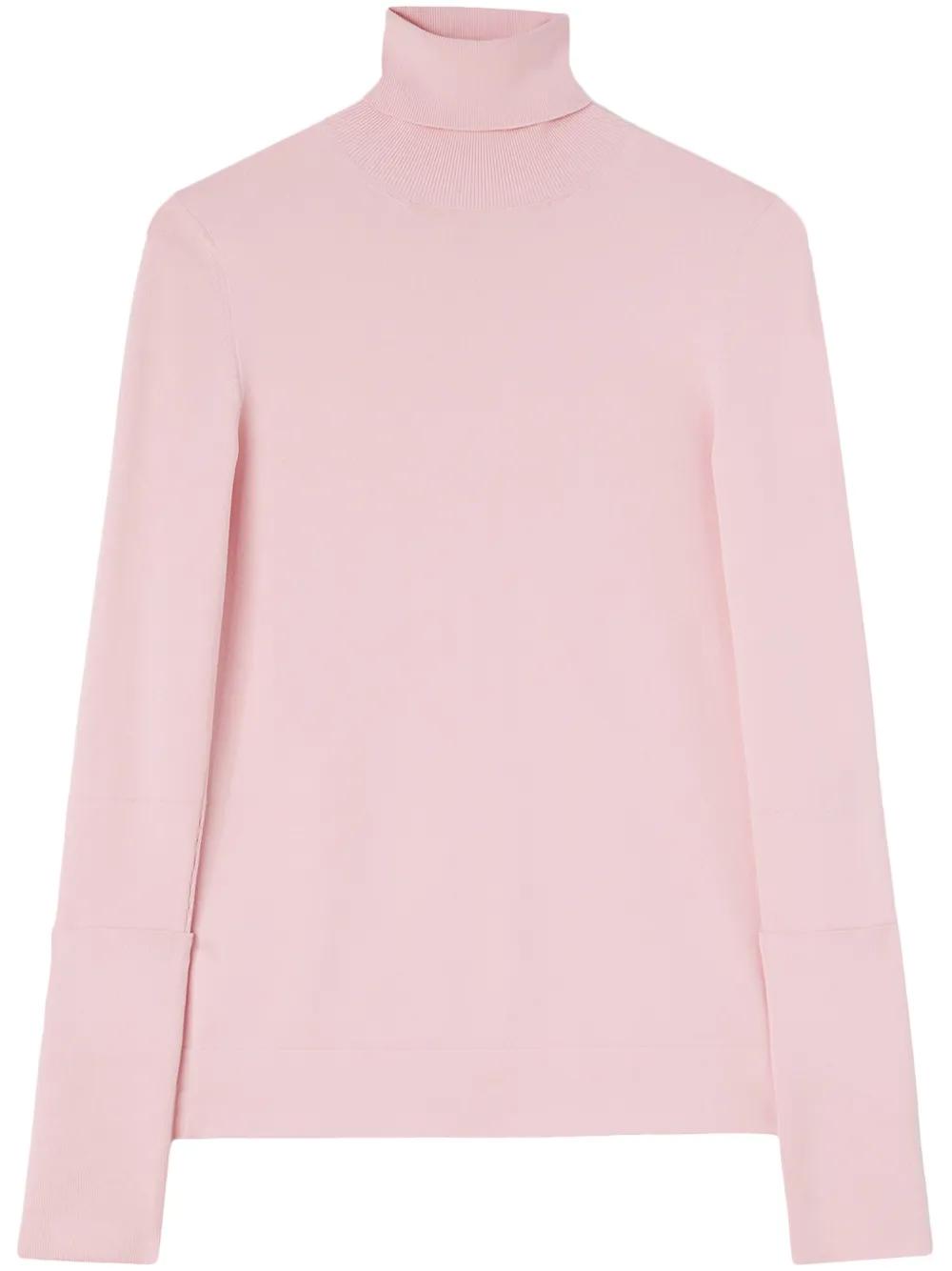 pink ribbed knit high neck ribbed cuffs and hem long sleeves