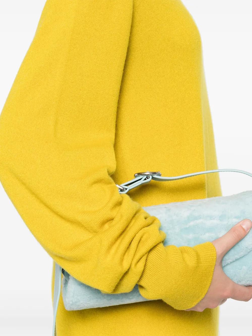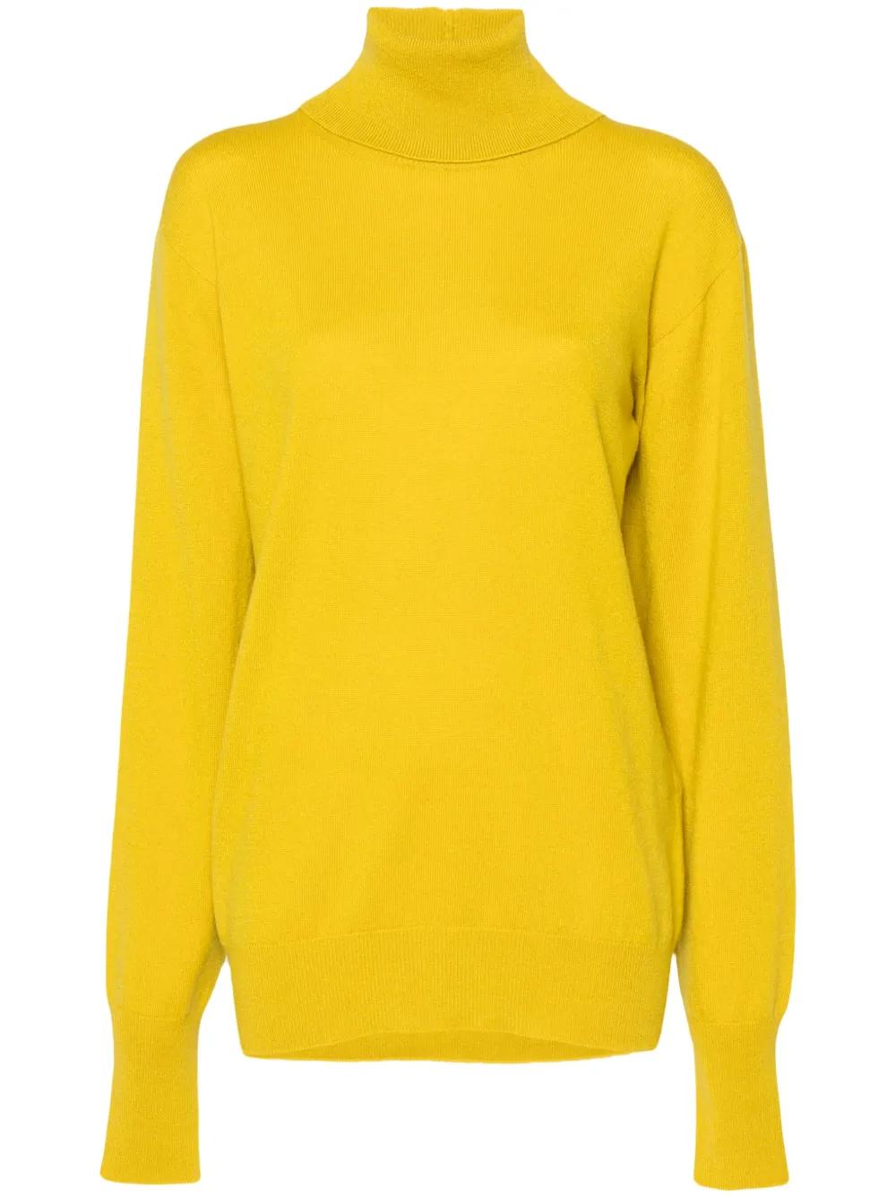 ochre yellow cashmere knitted construction roll neck long sleeves ribbed cuffs and hem straight hem