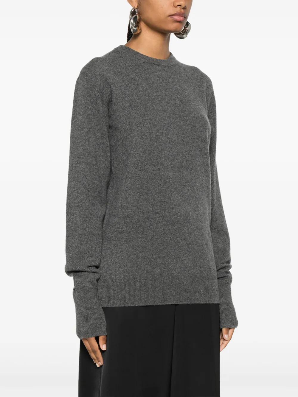 medium grey cashmere knitted construction mélange effect ribbed crew neck long sleeves ribbed cuffs and hem