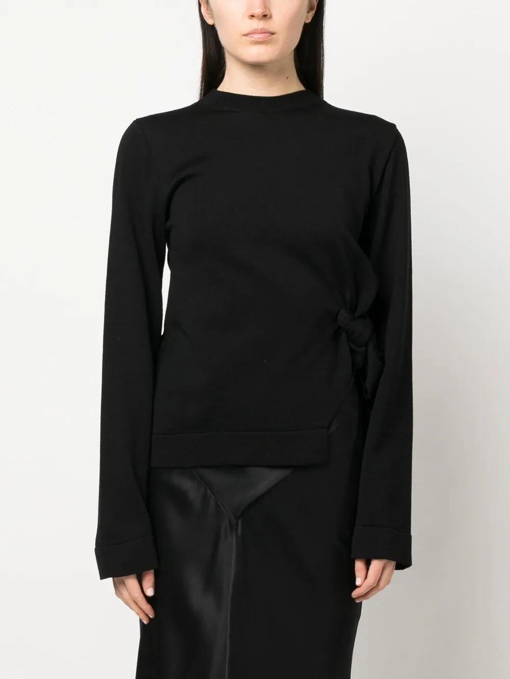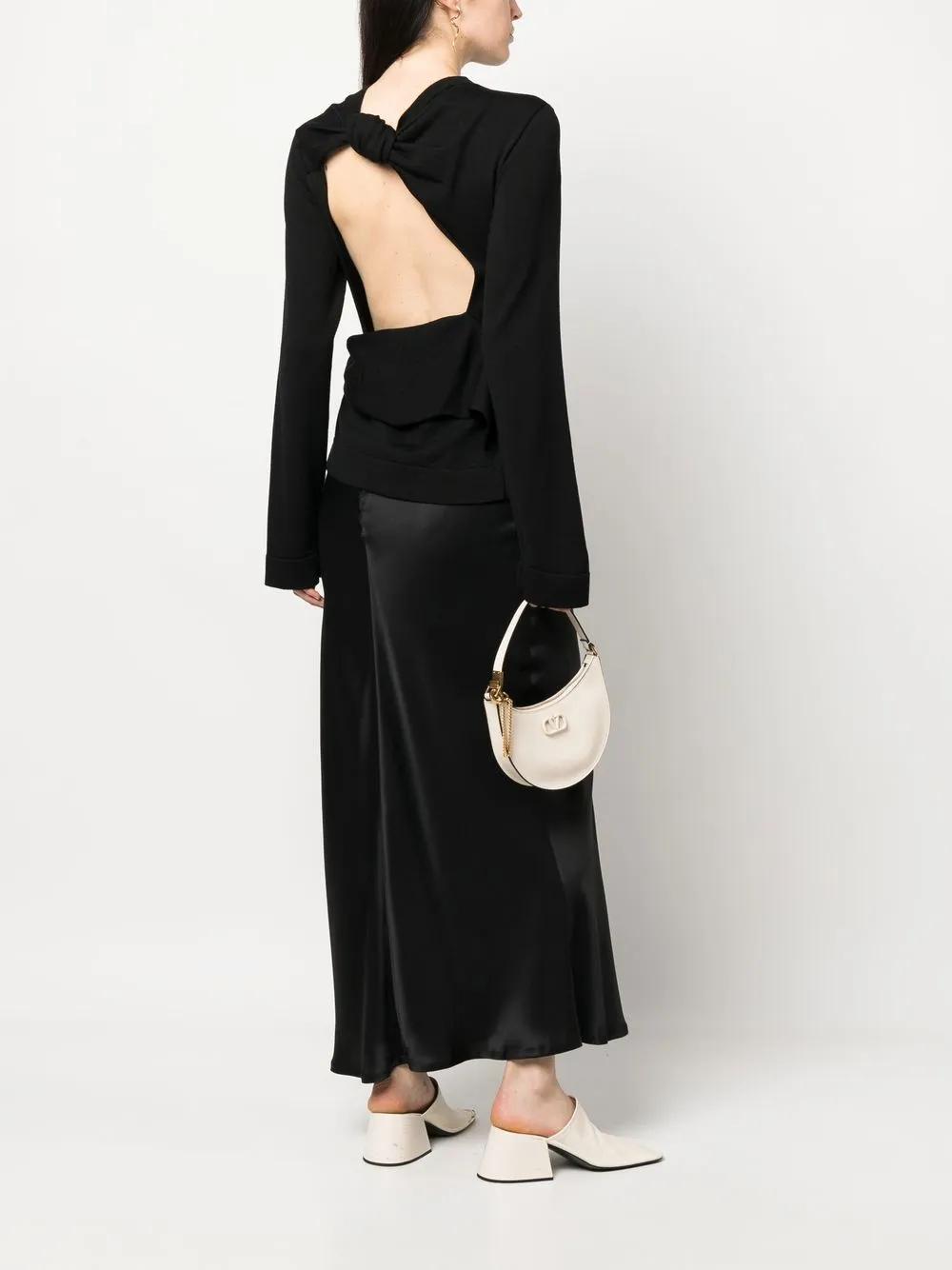 jet black wool open back twist detailing round neck long sleeves straight hem