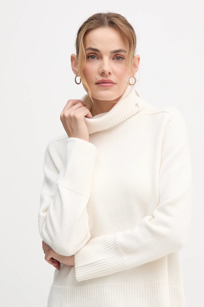 Joop! sweter z dodatkiem wełny damski kolor beżowy z golfem 30049417