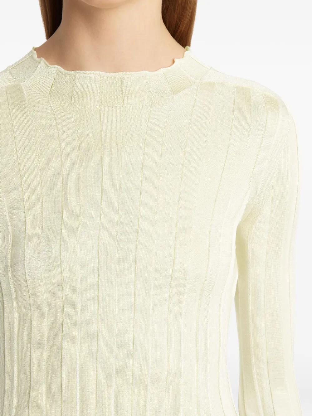 white cashmere knitted construction ribbed trim crew neck long sleeves embroidered logo to the side straight hem