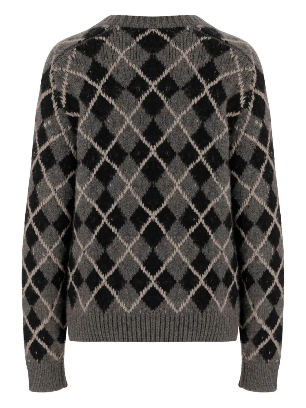 grey argyle pattern crew neck