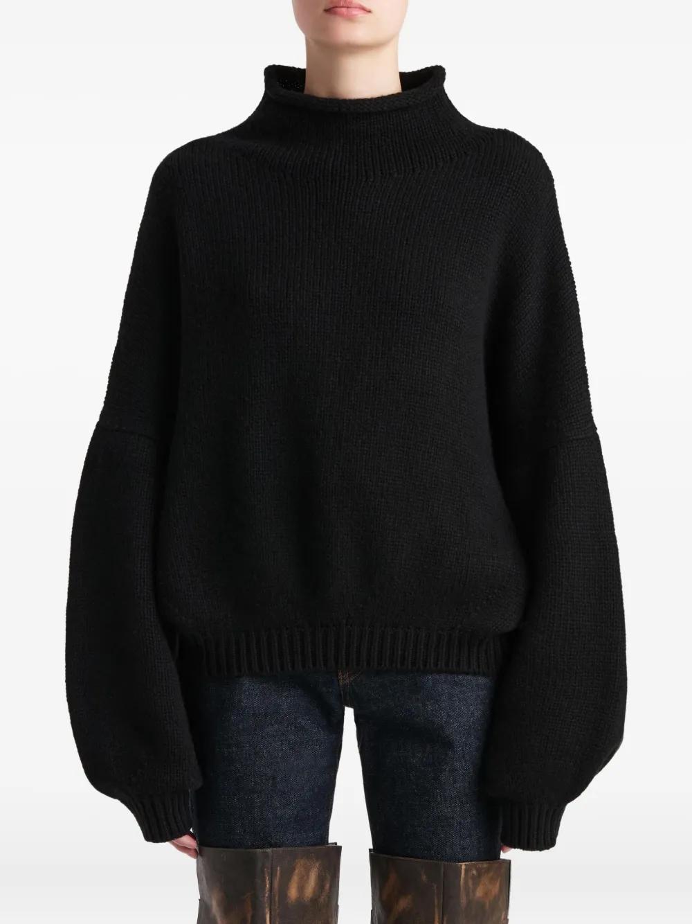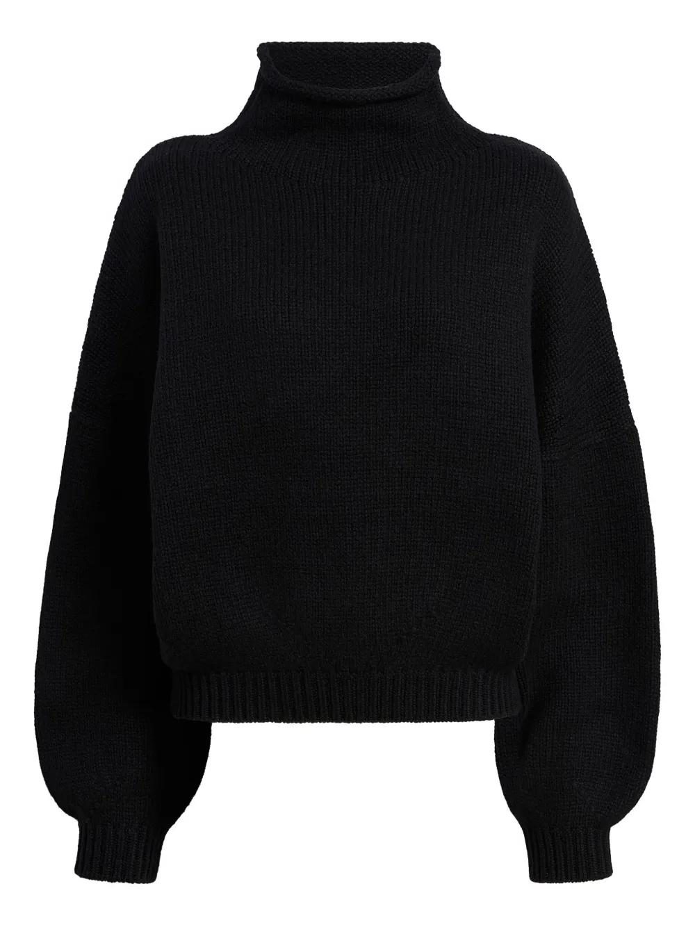 black cashmere funnel neck long sleeves ribbed knit oversized