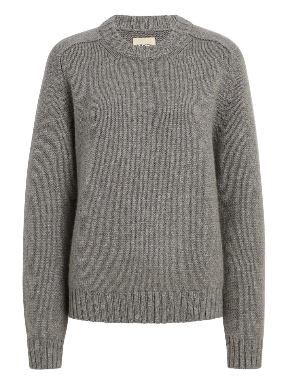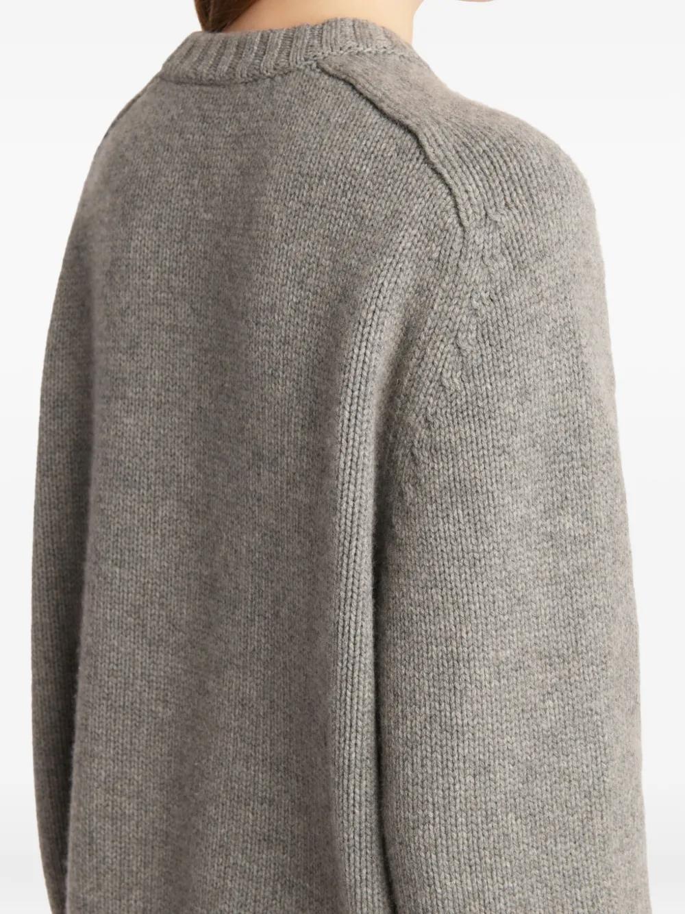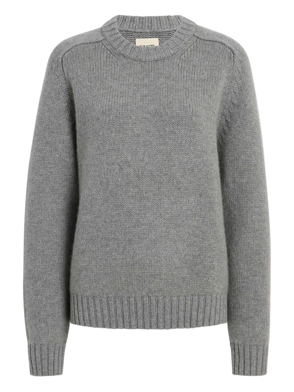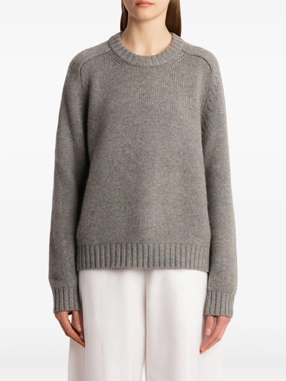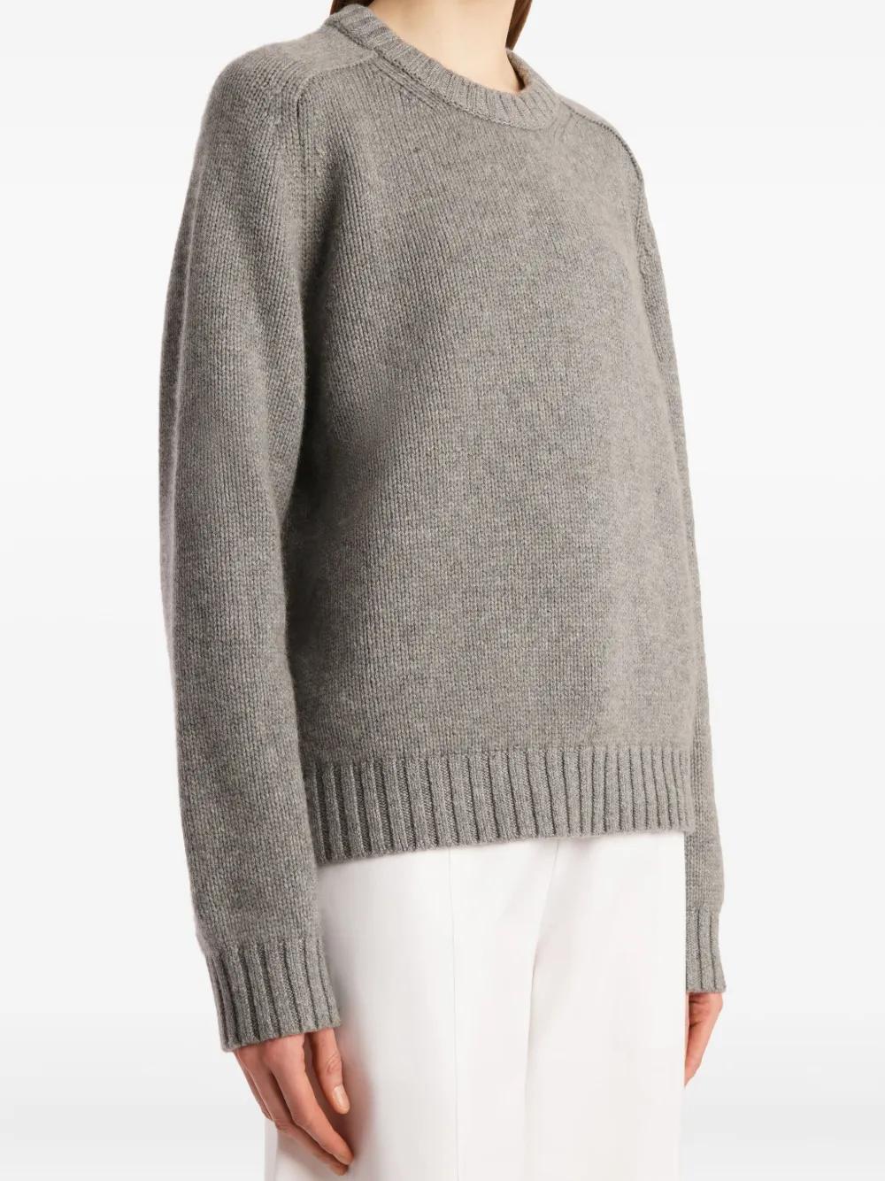 grey shoulder detail ribbed hem round neck long sleeves fine knit