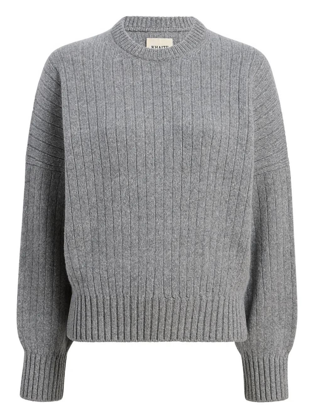 grey ribbed knit round neck long sleeves ribbed hem ribbed cuffs