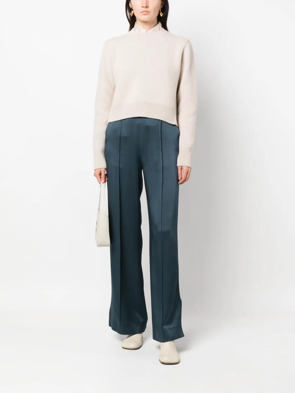 light beige virgin wool-cashmere blend knitted construction crew neck long sleeves ribbed cuffs and hem cropped
