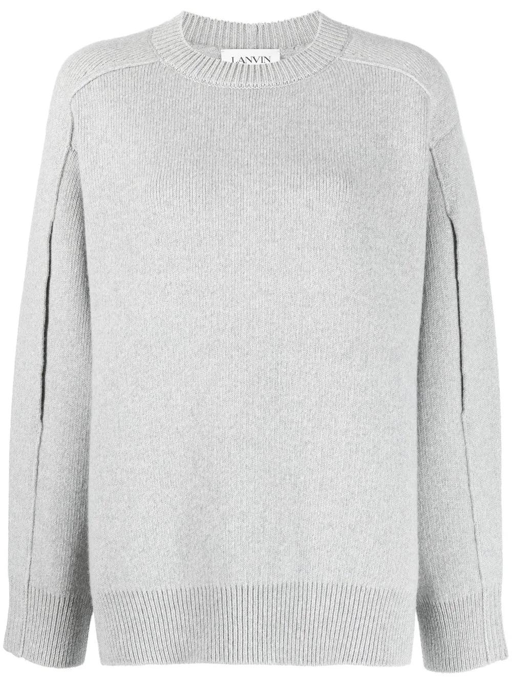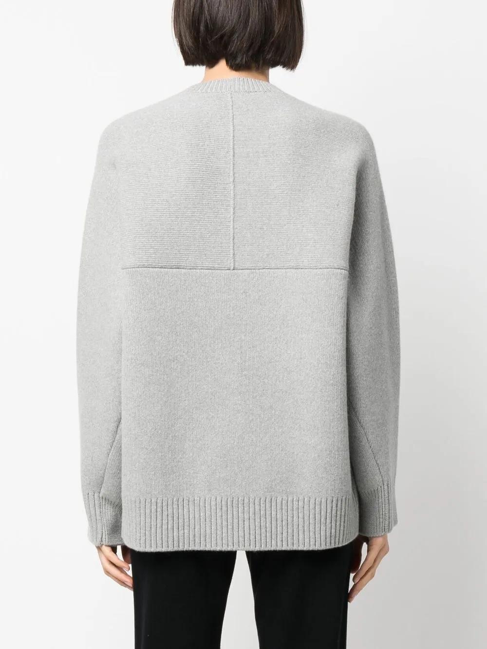 light grey wool-cashmere blend round neck rear cape insert long sleeves ribbed trim