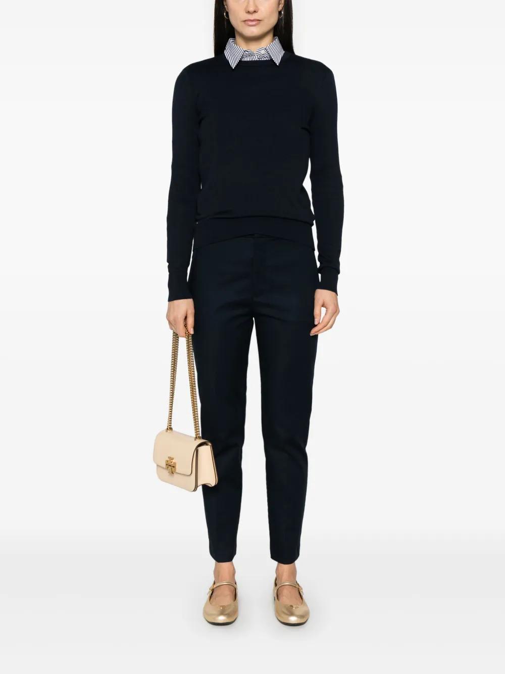 navy blue gold-tone logo plaque crew neck long sleeves ribbed cuffs and hem
