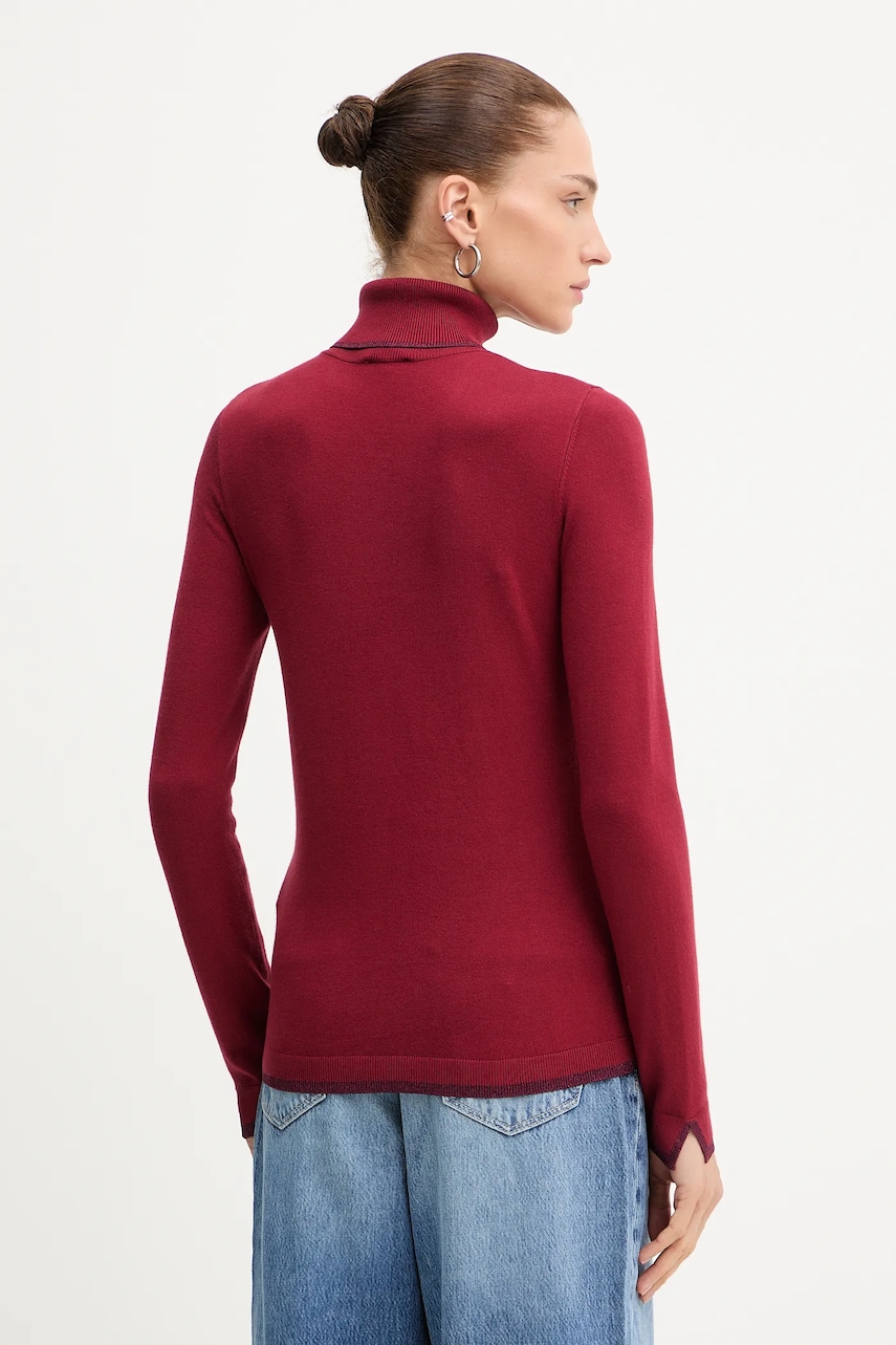 Liu Jo sweter damski kolor bordowy lekki z golfem MF5229 MS49I