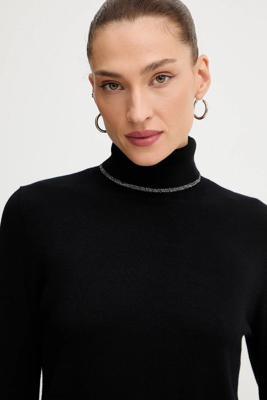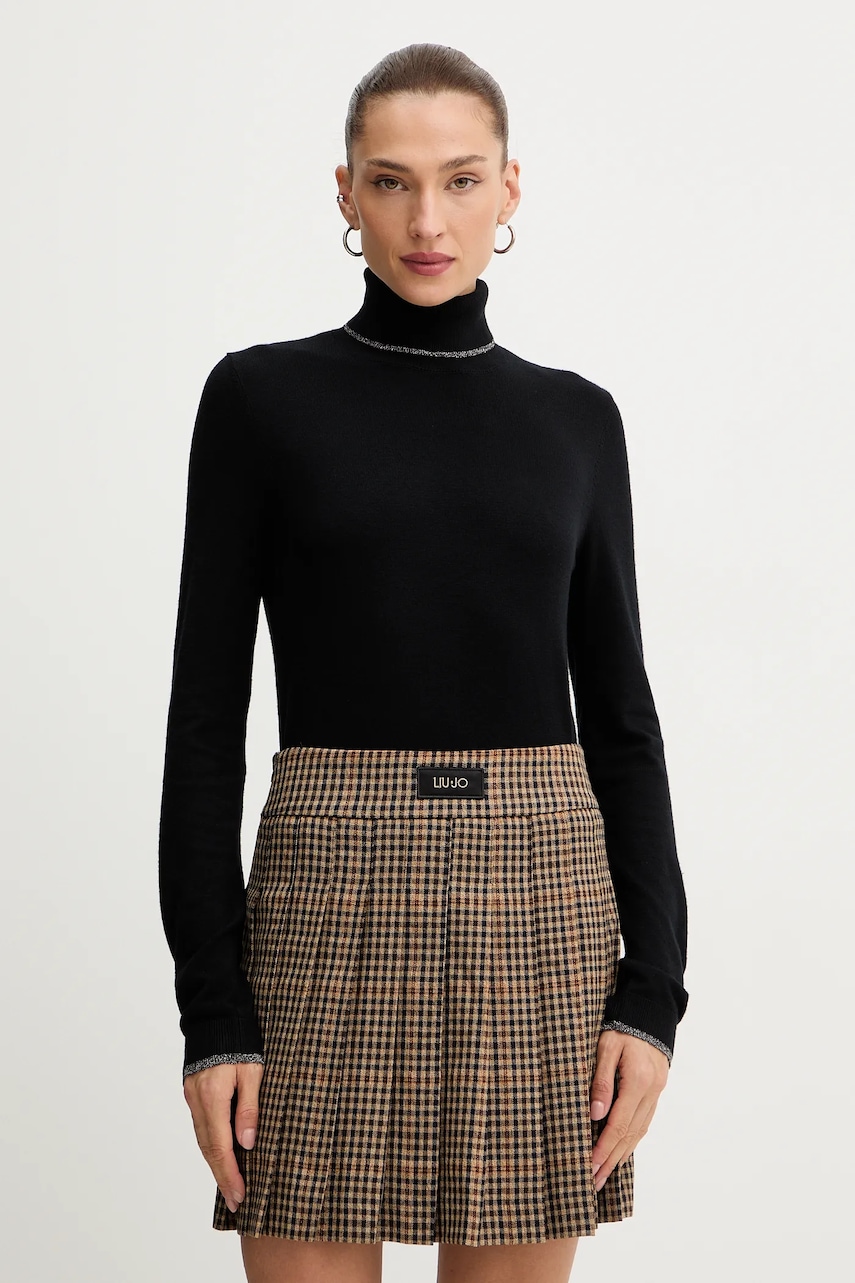 Liu Jo sweter damski kolor czarny lekki z golfem MF5229 MS49I