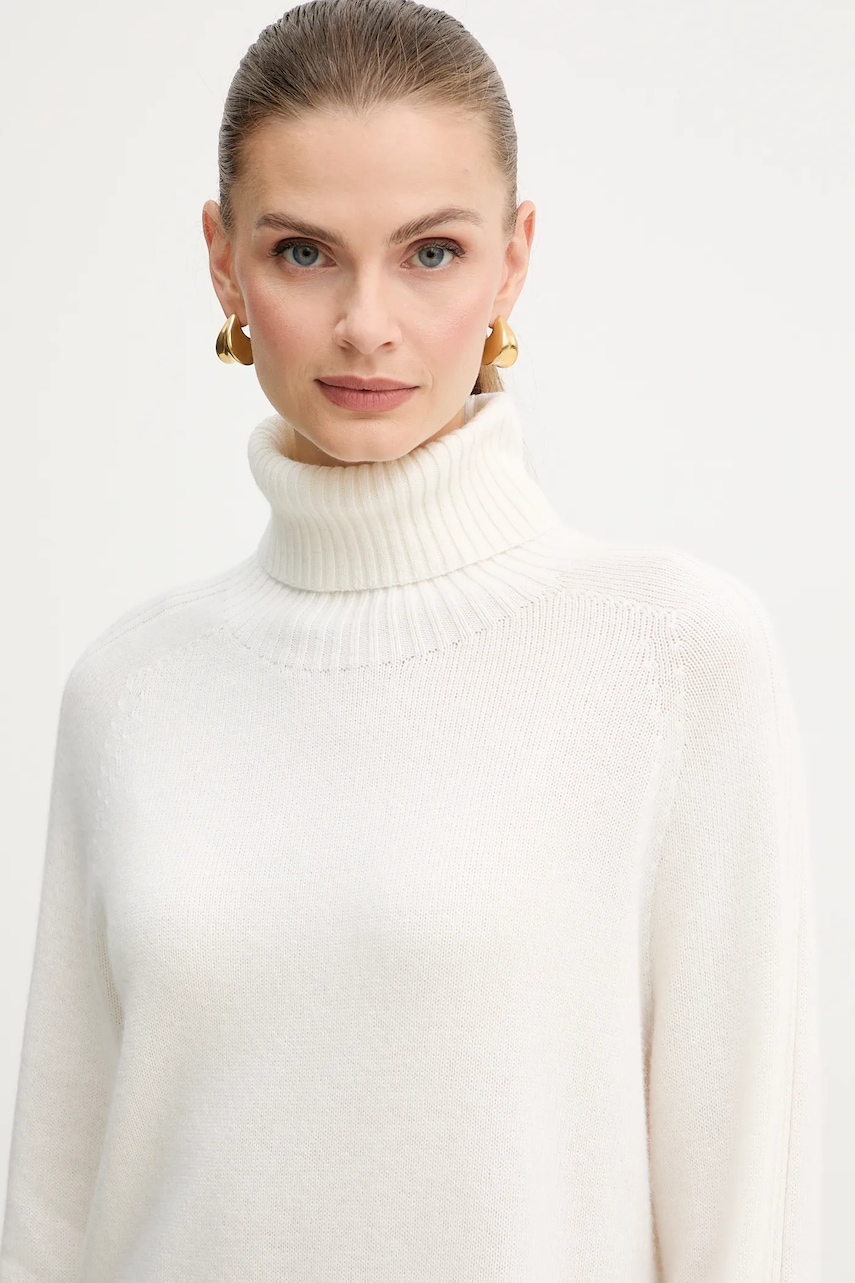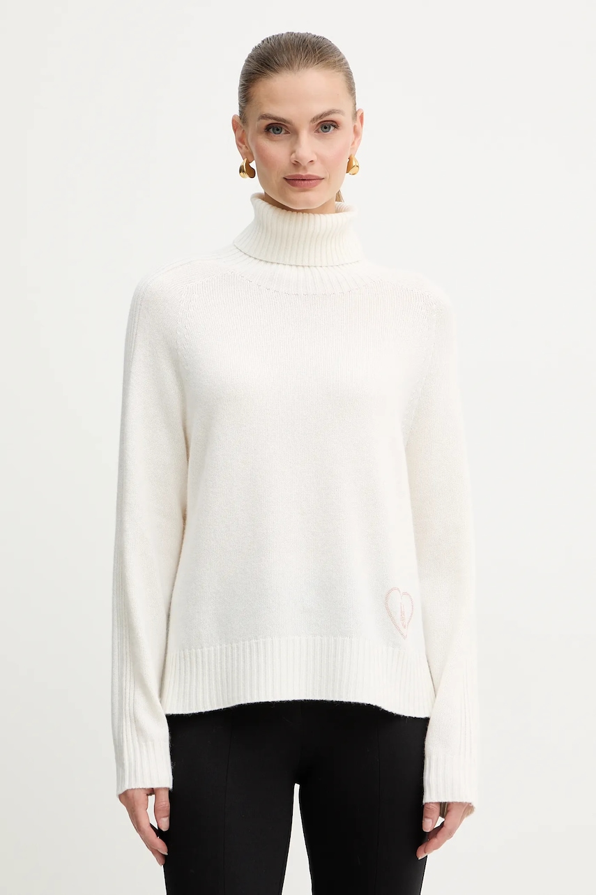 Liu Jo sweter z dodatkiem wełny damski kolor beżowy z golfem MF5445 MS76L