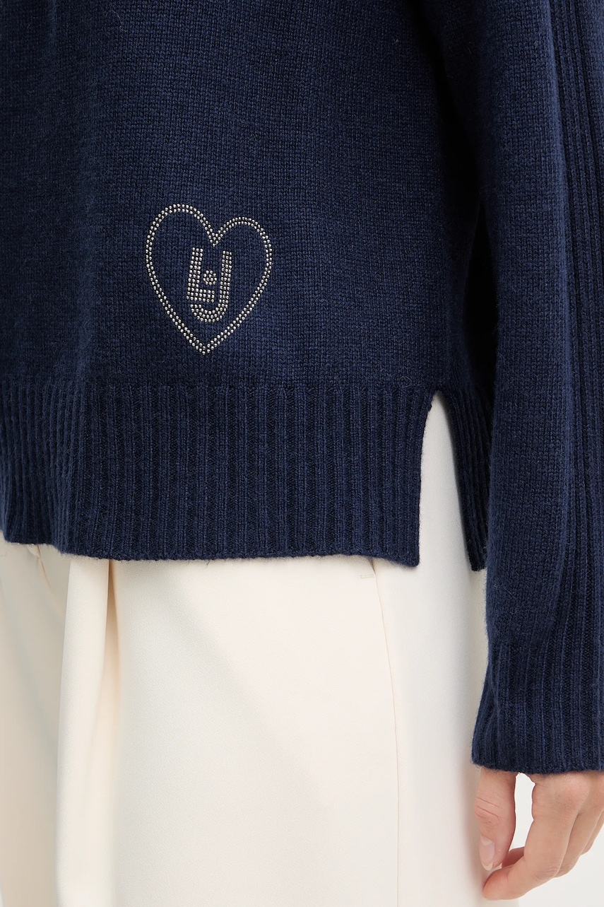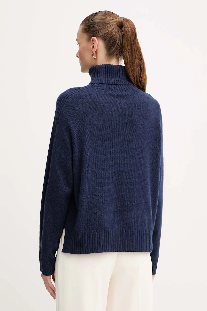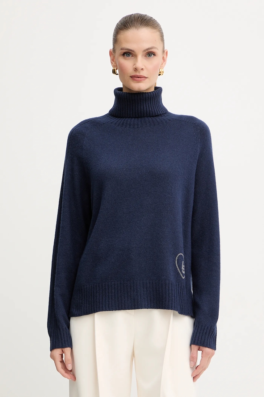 Liu Jo sweter z dodatkiem wełny damski kolor granatowy z golfem MF5445 MS76L