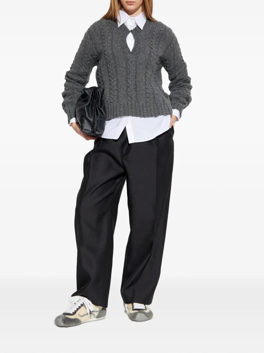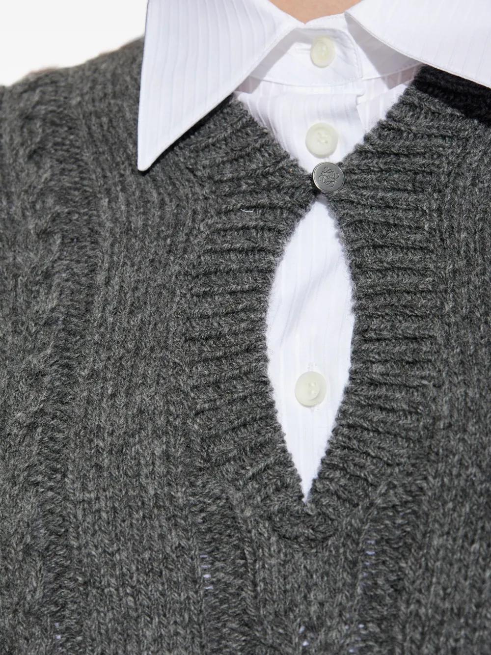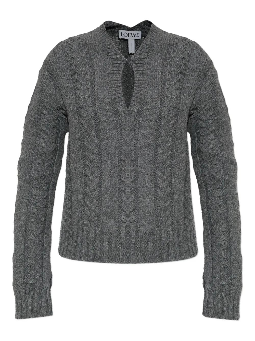 grey cable knit keyhole detail long sleeves ribbed hem and cuffs