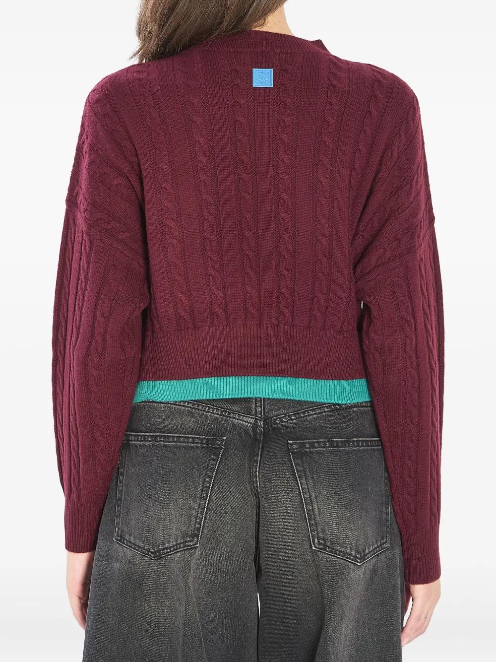bordeaux ribbed knit crew neck anagram patch double hem ribbed cuffs