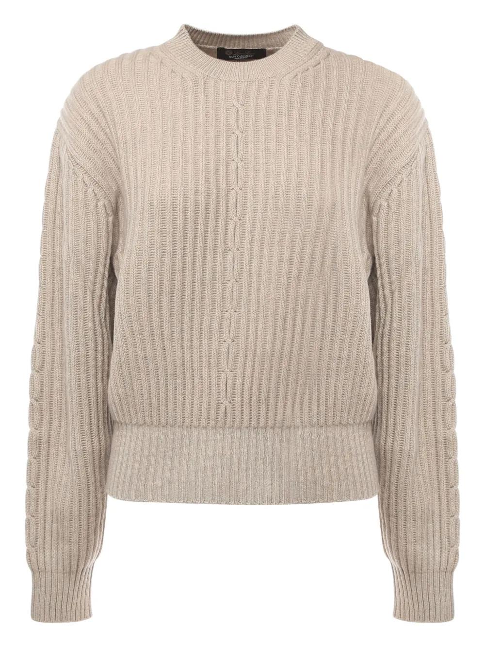beige cable knit detail ribbed knit round neck long sleeves ribbed hem