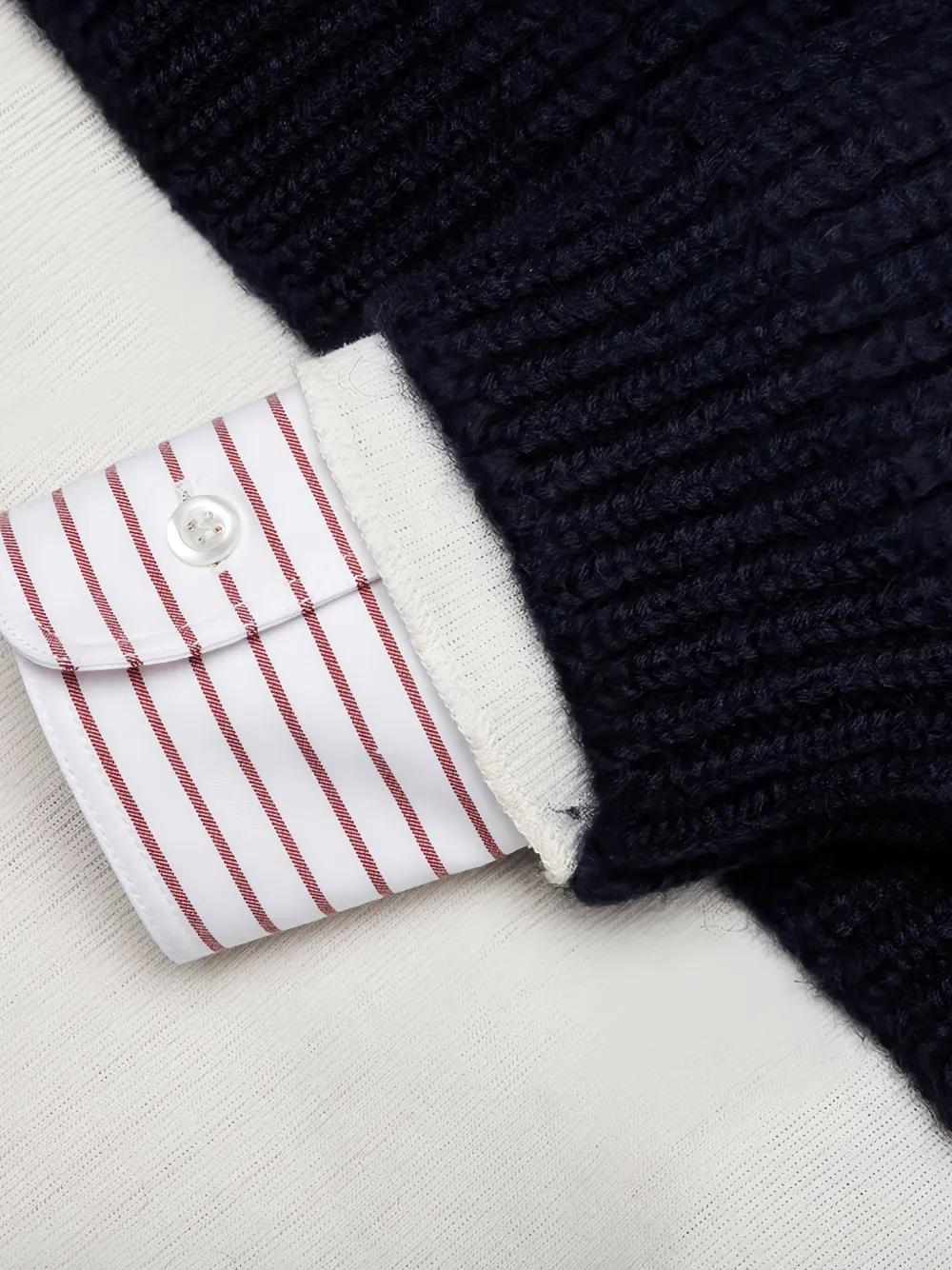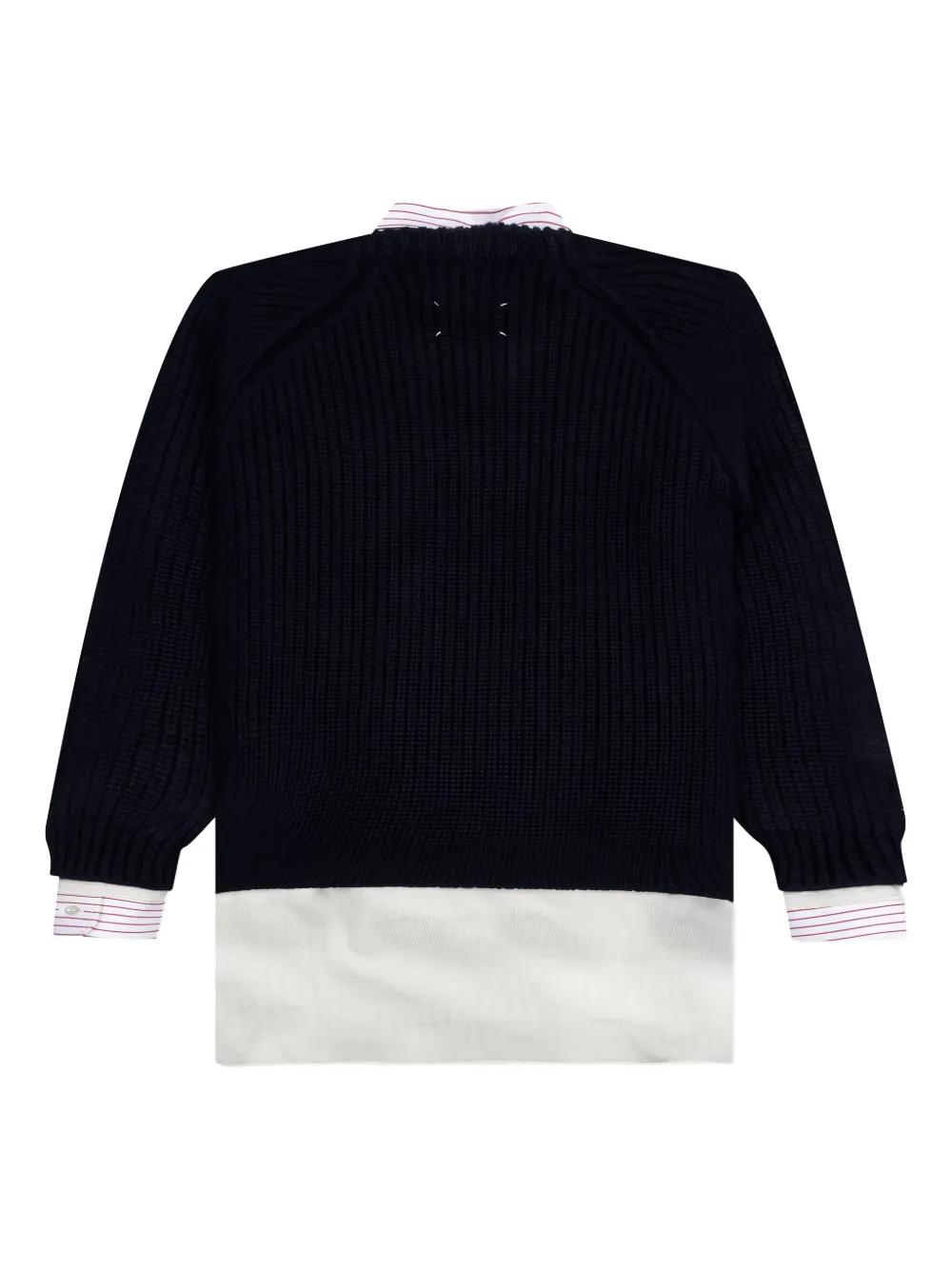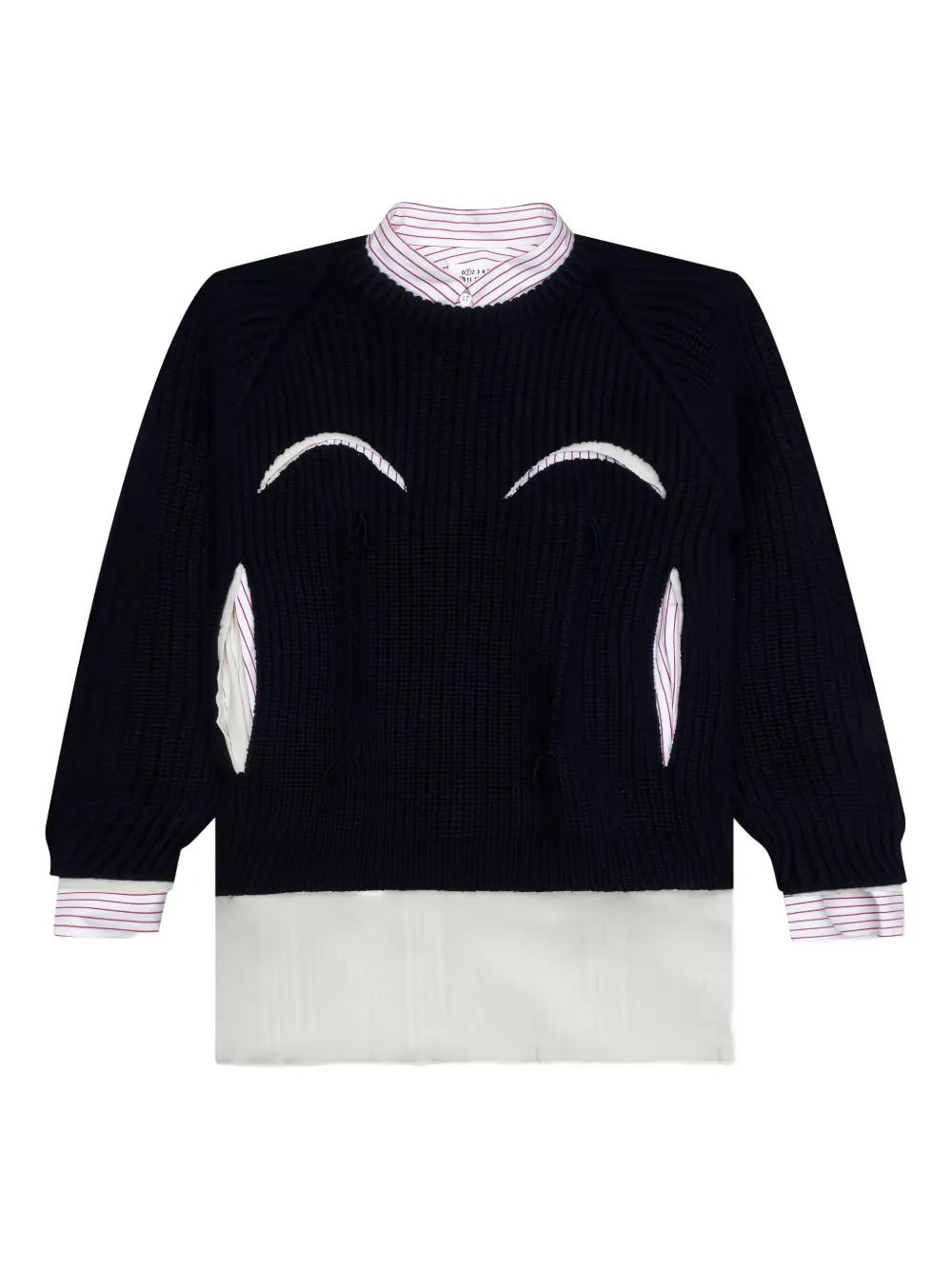 black ribbed knit shirt panelling cut-out detailing striped pattern round neck