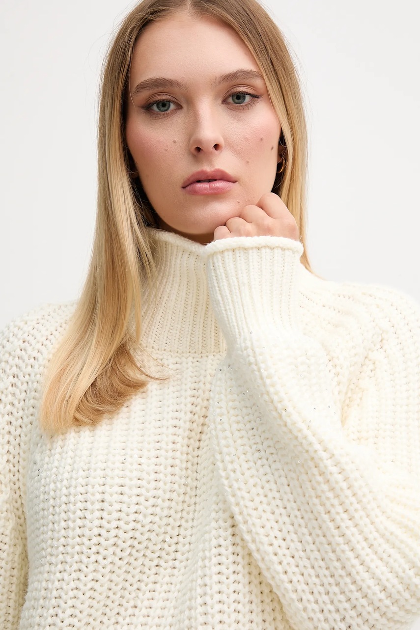 Marc Aurel sweter damski kolor beżowy z golfem 8014-8000-82084