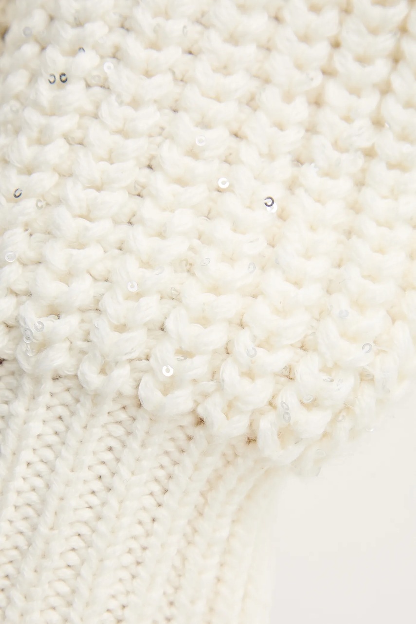 - Fason relaxed. - Rękawy i dolna krawędź wykończone wygodnym, elastycznym ściągaczem. - Model z golfem. - Model z materiału z cekinami. - Długość: 60 cm. - Szerokość pod pachami: 55 cm. - Wymiary podane dla rozmiaru: 36.