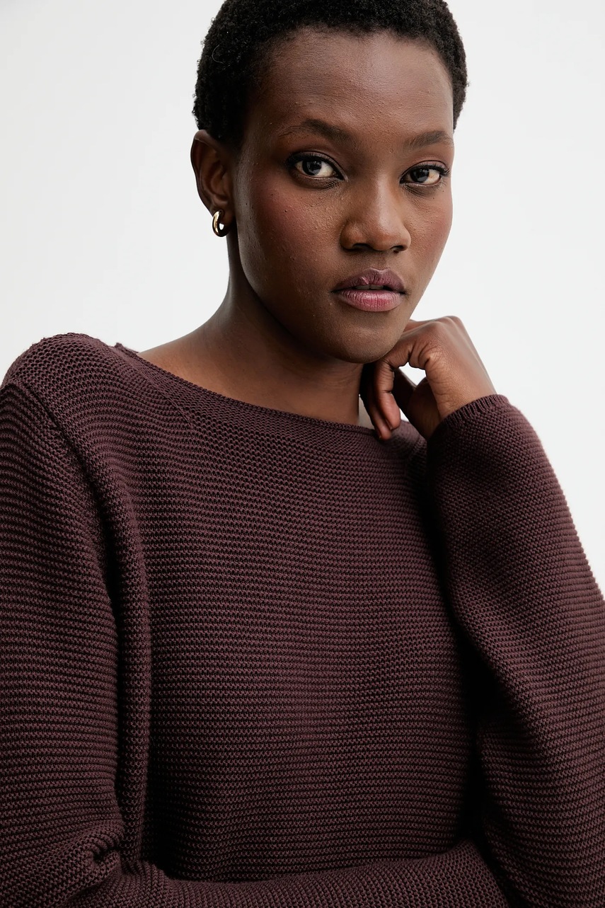 - Produkt wyprodukowany zgodnie z założeniami Fair Wear Foundation, organizacji zrzeszającej marki odzieżowe tworzące produkty w bardziej zrównoważony i etyczny sposób. Produkty oznaczone znakiem Fair Wear powstały w fabrykach, które pozytywnie przeszły zewnętrzny audyt i zapewniają pracownikom odpowiednie warunki pracy oraz wynagrodzenie. - Designed for circularity. Model wykonany z jednego rodzaju materiału, co ułatwi recykling w przyszłości. - Produkt oznaczony certyfikatem Global Organic Textile Standard (GOTS), gwarantującym wysoką jakość wyrobu, zgodną z określonymi normami ekologicznymi. Proces certyfikowania obejmuje wszystkie etapy wytwarzania produktów z materiałów naturalnych, od surowca aż po gotowy produkt. - Luźny krój zapewniający pełną swobodę ruchów. - Dekolt typu łódka. - Krój rękawa z obniżoną linią ramion nie ogranicza mobilności. - Rękawy i dolna krawędź zakończona ściągaczami chroniącymi przed niekorzystnymi warunkami atmosferycznymi. - Elastyczna dzianina o średniej grubości. - Długość rękawa(mierzona od dekoltu): 74 cm. - Długość: 70 cm. - Szerokość pod pachami: 55 cm. - Wymiary podane dla rozmiaru: S.