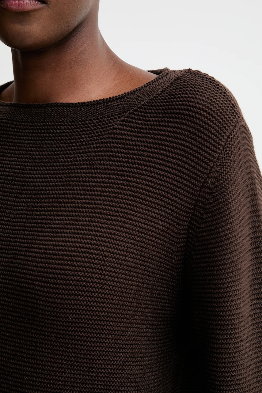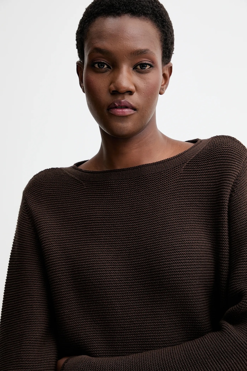 - Produkt wyprodukowany zgodnie z założeniami Fair Wear Foundation, organizacji zrzeszającej marki odzieżowe tworzące produkty w bardziej zrównoważony i etyczny sposób. Produkty oznaczone znakiem Fair Wear powstały w fabrykach, które pozytywnie przeszły zewnętrzny audyt i zapewniają pracownikom odpowiednie warunki pracy oraz wynagrodzenie. - Designed for circularity. Model wykonany z jednego rodzaju materiału, co ułatwi recykling w przyszłości. - Produkt oznaczony certyfikatem Global Organic Textile Standard (GOTS), gwarantującym wysoką jakość wyrobu, zgodną z określonymi normami ekologicznymi. Proces certyfikowania obejmuje wszystkie etapy wytwarzania produktów z materiałów naturalnych, od surowca aż po gotowy produkt. - Luźny krój zapewniający pełną swobodę ruchów. - Dekolt typu łódka. - Krój rękawa z obniżoną linią ramion nie ogranicza mobilności. - Rękawy i dolna krawędź zakończona ściągaczami chroniącymi przed niekorzystnymi warunkami atmosferycznymi. - Elastyczna dzianina o średniej grubości. - Długość rękawa(mierzona od dekoltu): 74 cm. - Długość: 70 cm. - Szerokość pod pachami: 55 cm. - Wymiary podane dla rozmiaru: S.