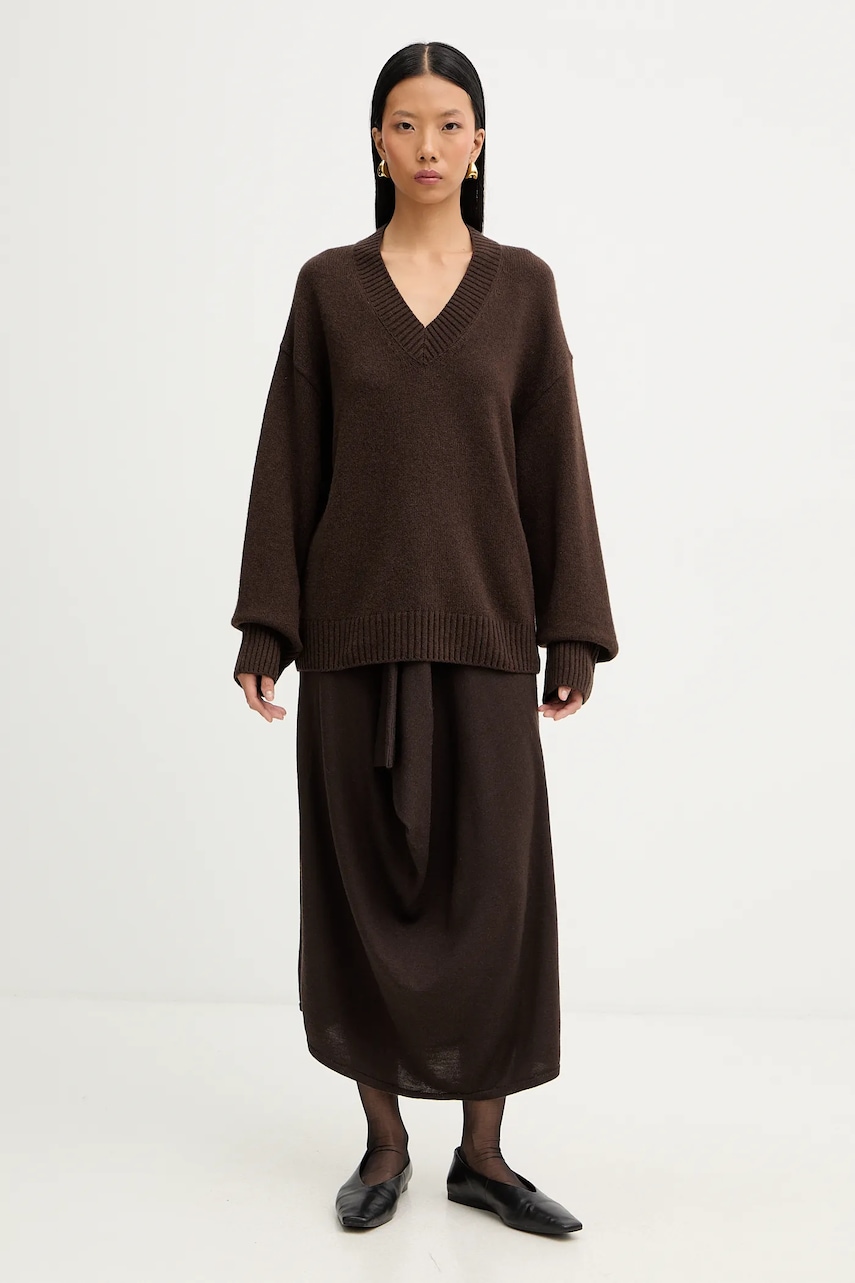 Marc O'Polo sweter z dodatkiem wełny damski kolor brązowy 510609060235