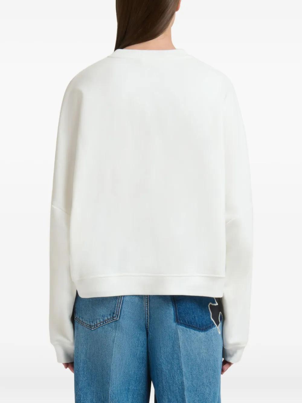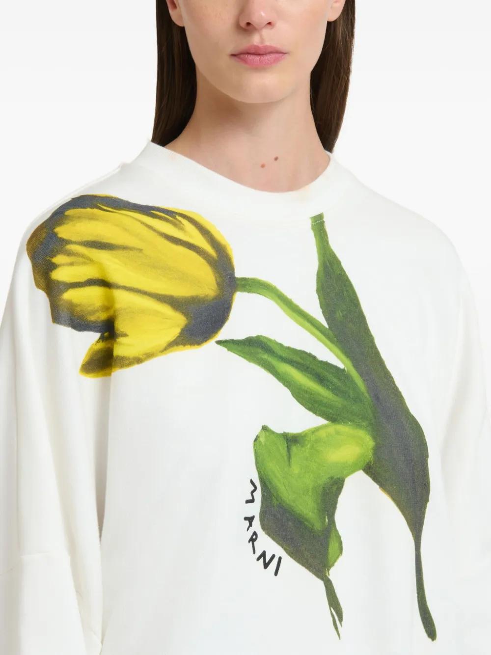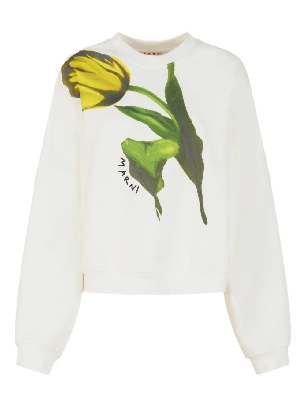 white tulip print crew neck dropped shoulders long sleeves ribbed trim