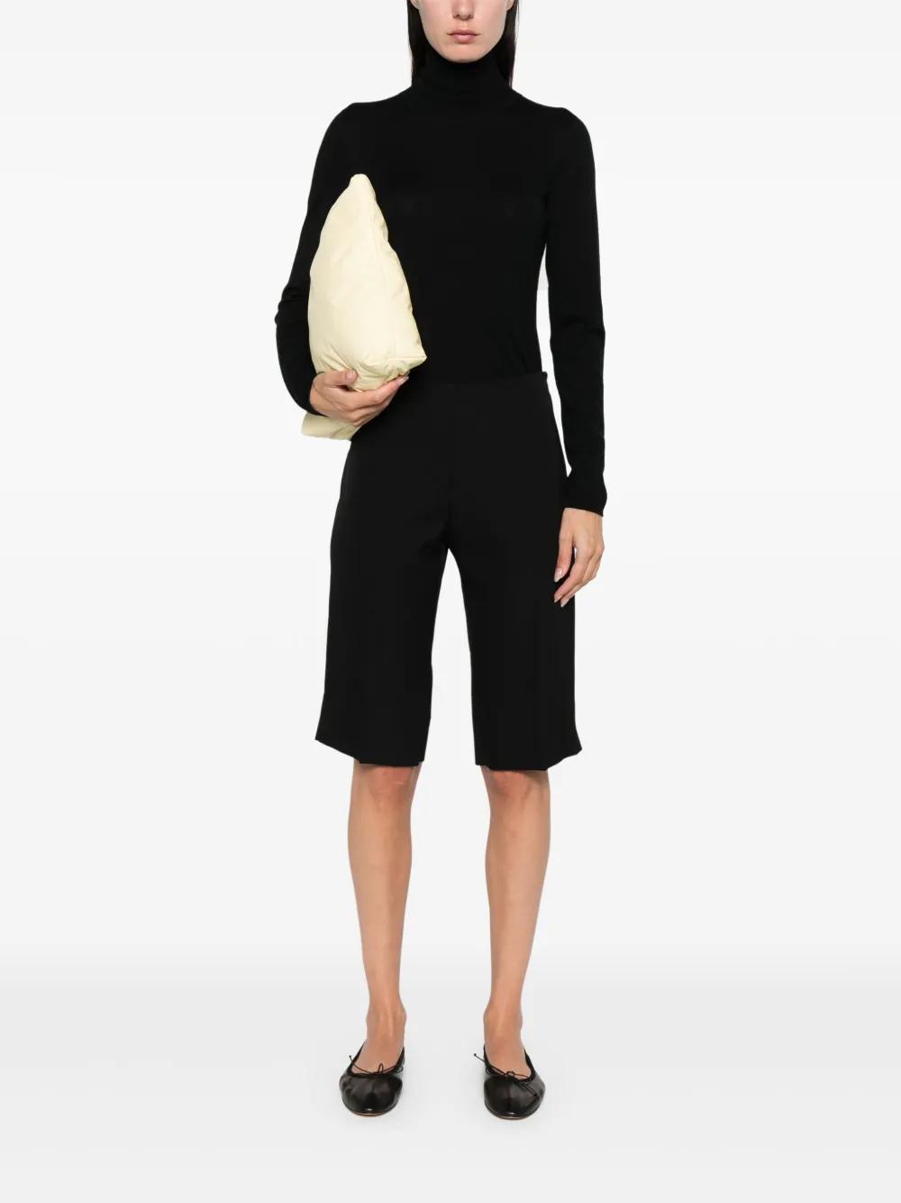 black cashmere fine knit roll neck long sleeves ribbed trim straight hem
