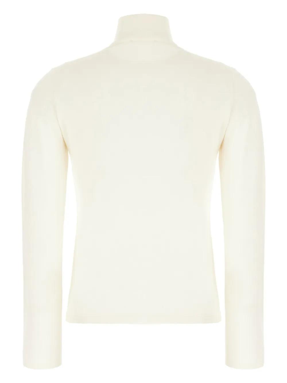 light beige V-neckline dropped shoulder seams long sleeves ribbed cuffs and hem