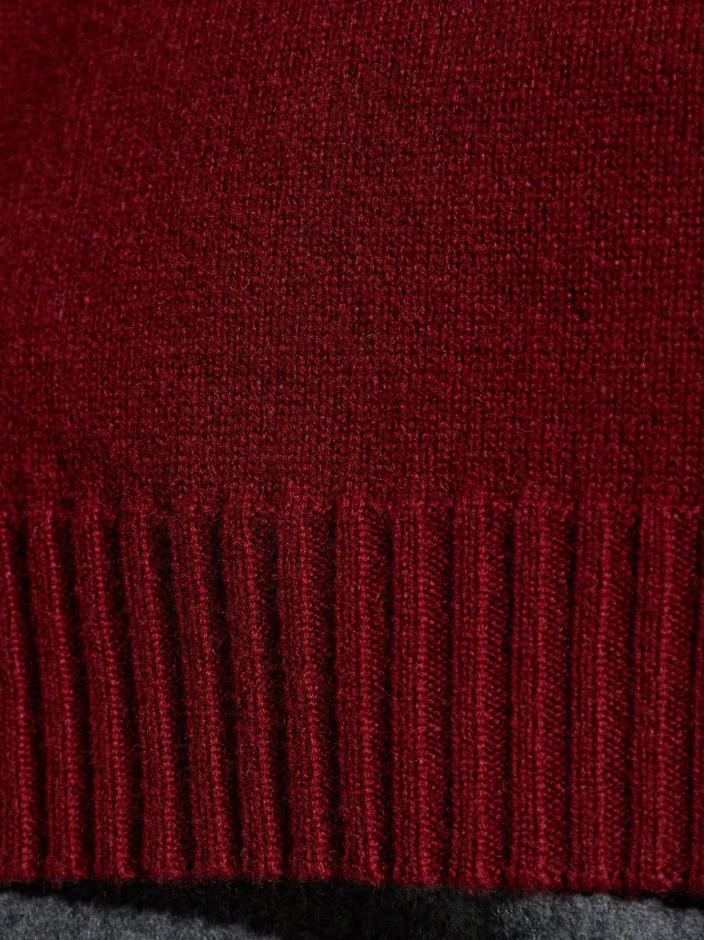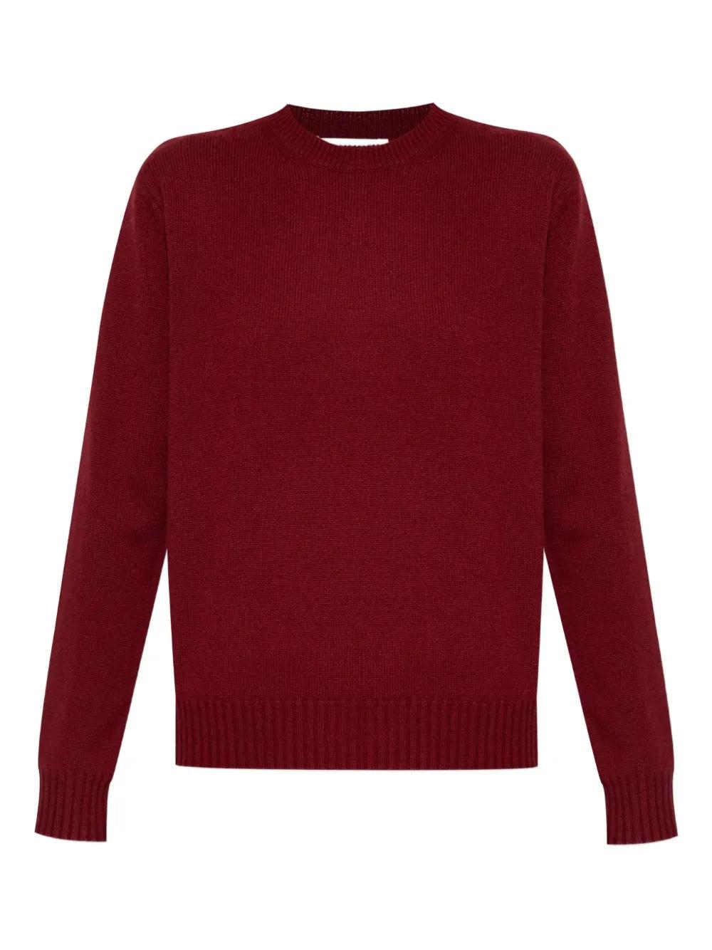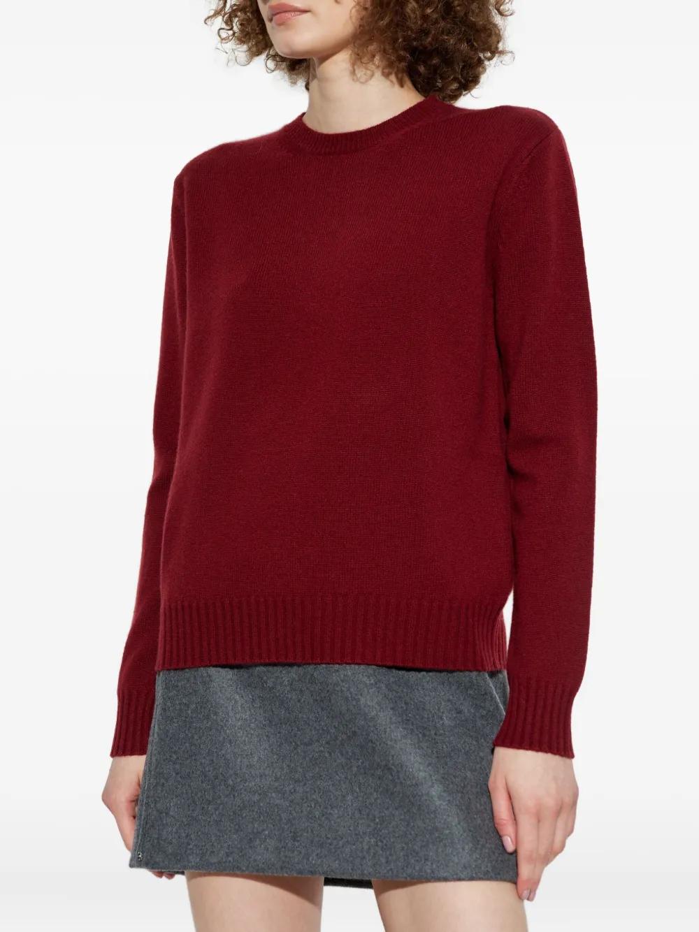 red cashmere ribbed hem long sleeves crew neck plain knit