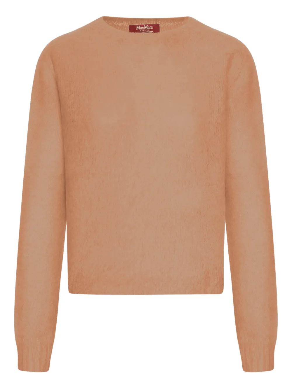 blue ribbed knit logo detail round neck long sleeves tonal stitching