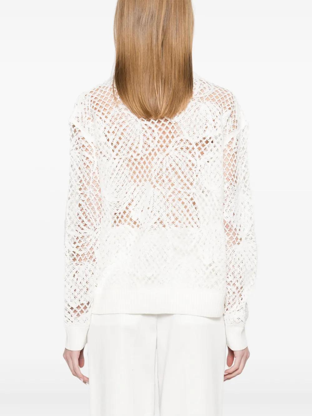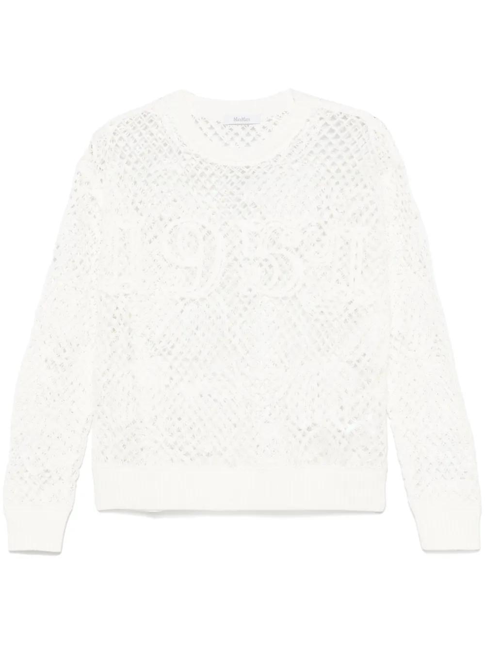 off-white ribbed cuffs ribbed crewneck long sleeves intarsia-knit lettering crab motif