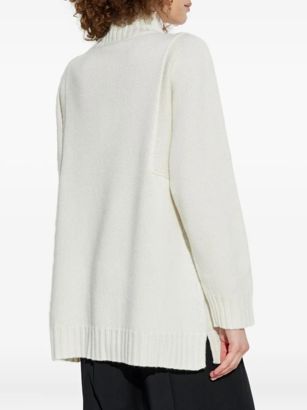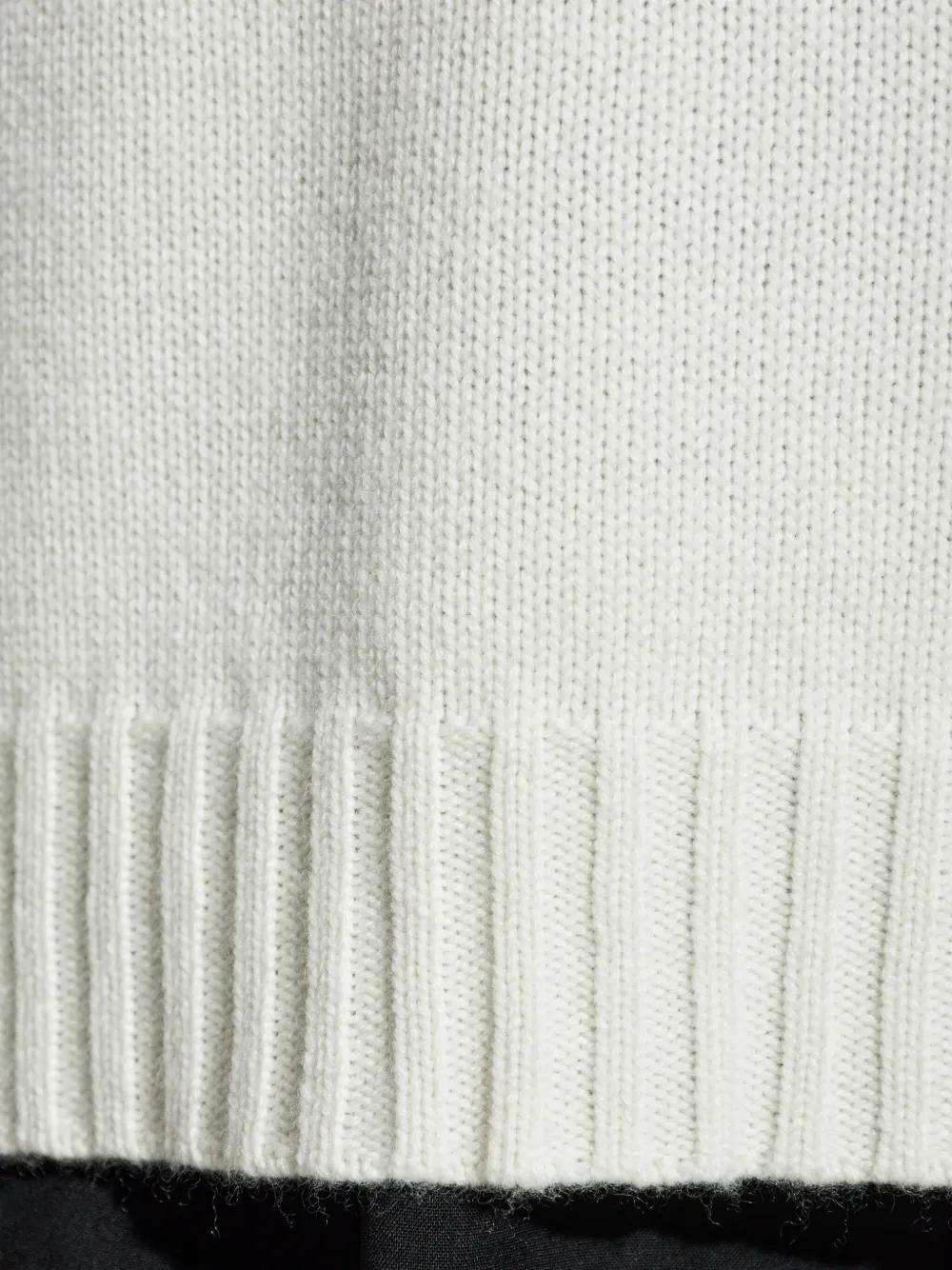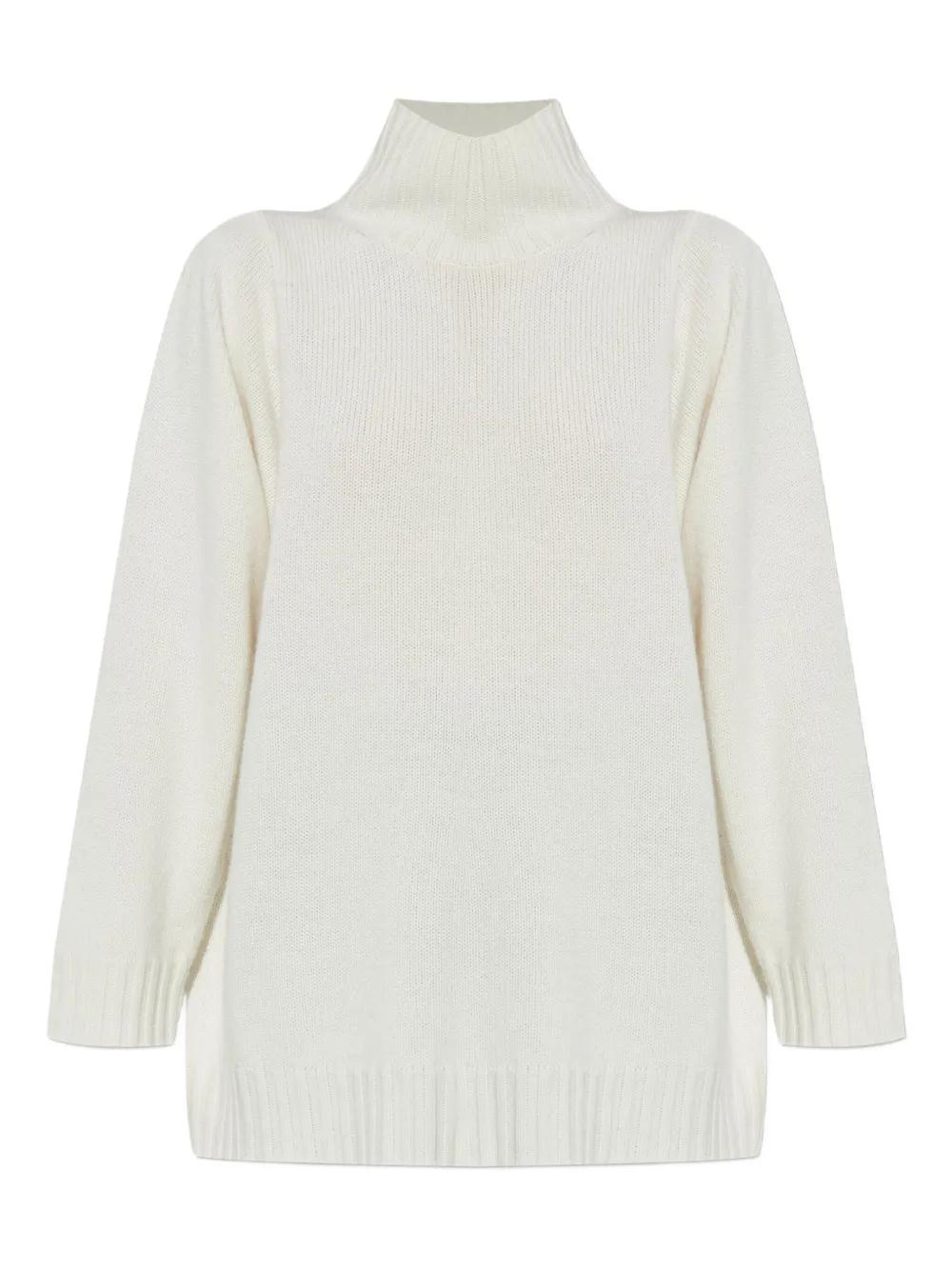beige high neck long sleeves cashmere ribbed cuffs straight hem