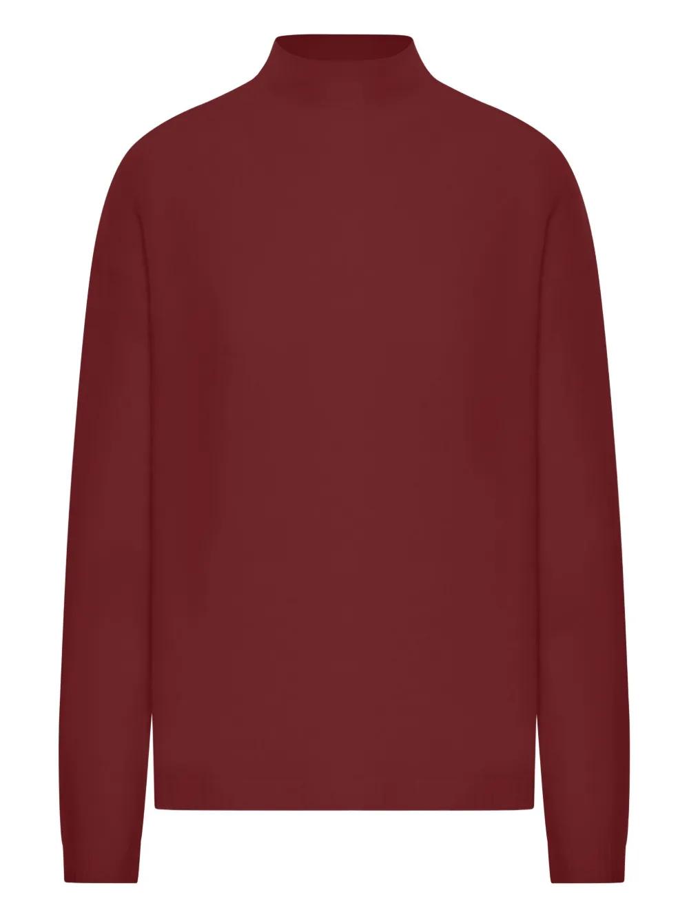 red cashmere blended high neck long sleeves straight hem