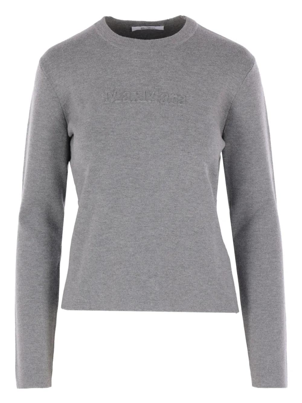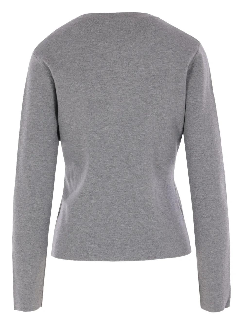 medium grey ribbed knit rhinestone embellishment round neck long sleeves