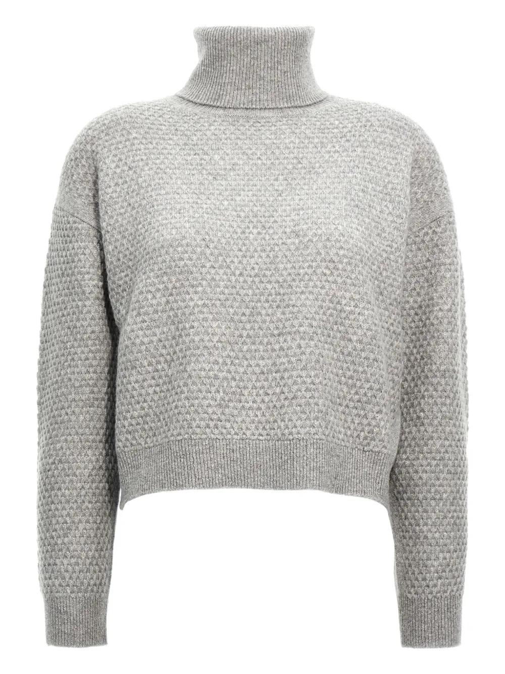 beige high neck long sleeves cashmere ribbed cuffs straight hem