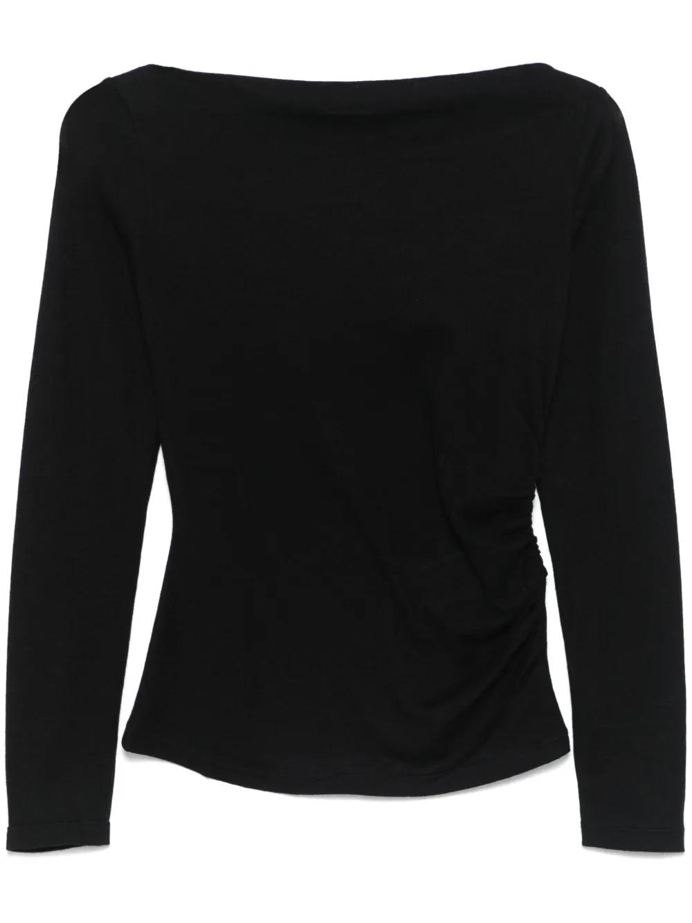 black ruched detailing boat neck long sleeves flared cuffs