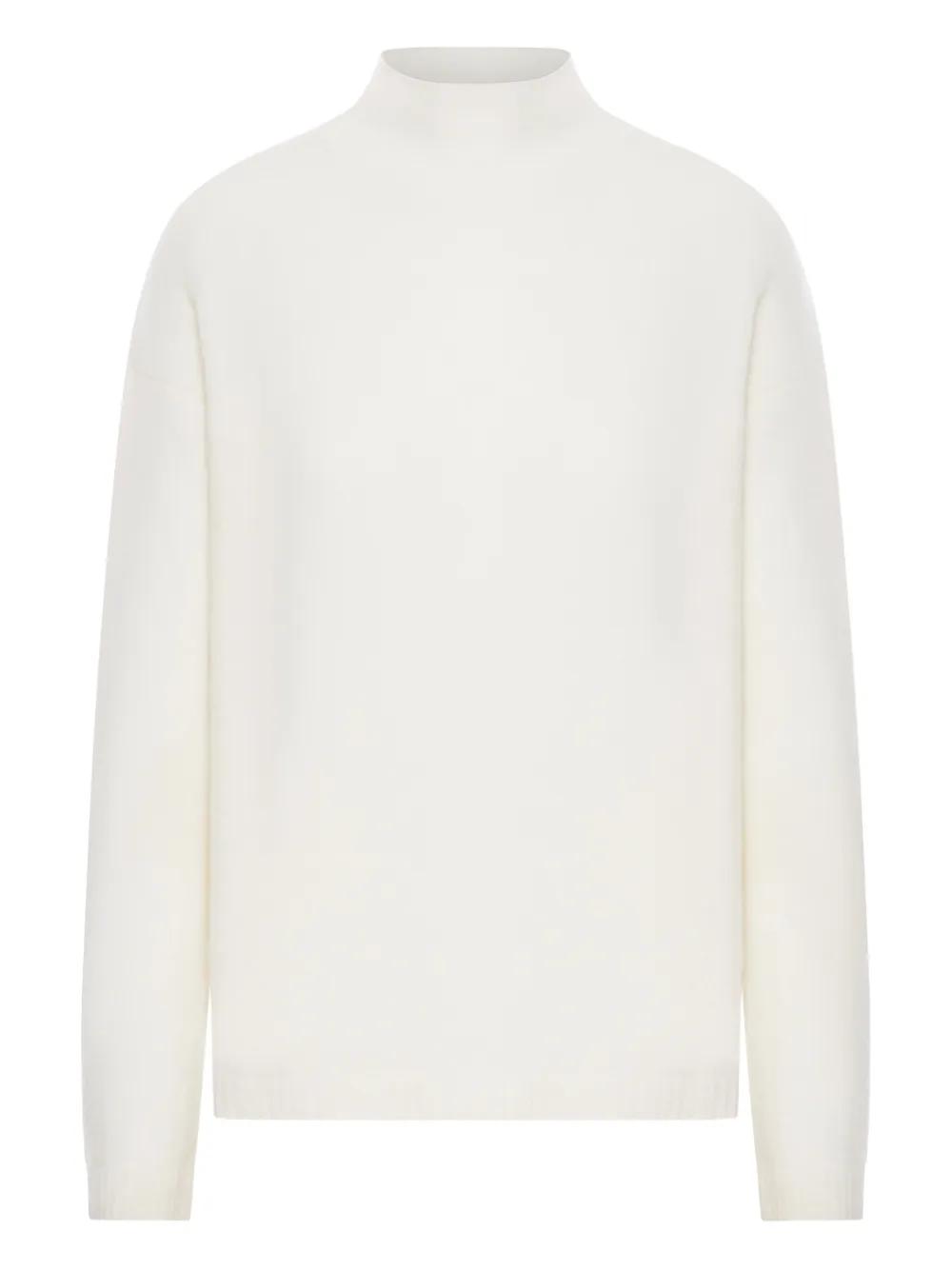 white cashmere high neck long sleeves ribbed hem relaxed fit