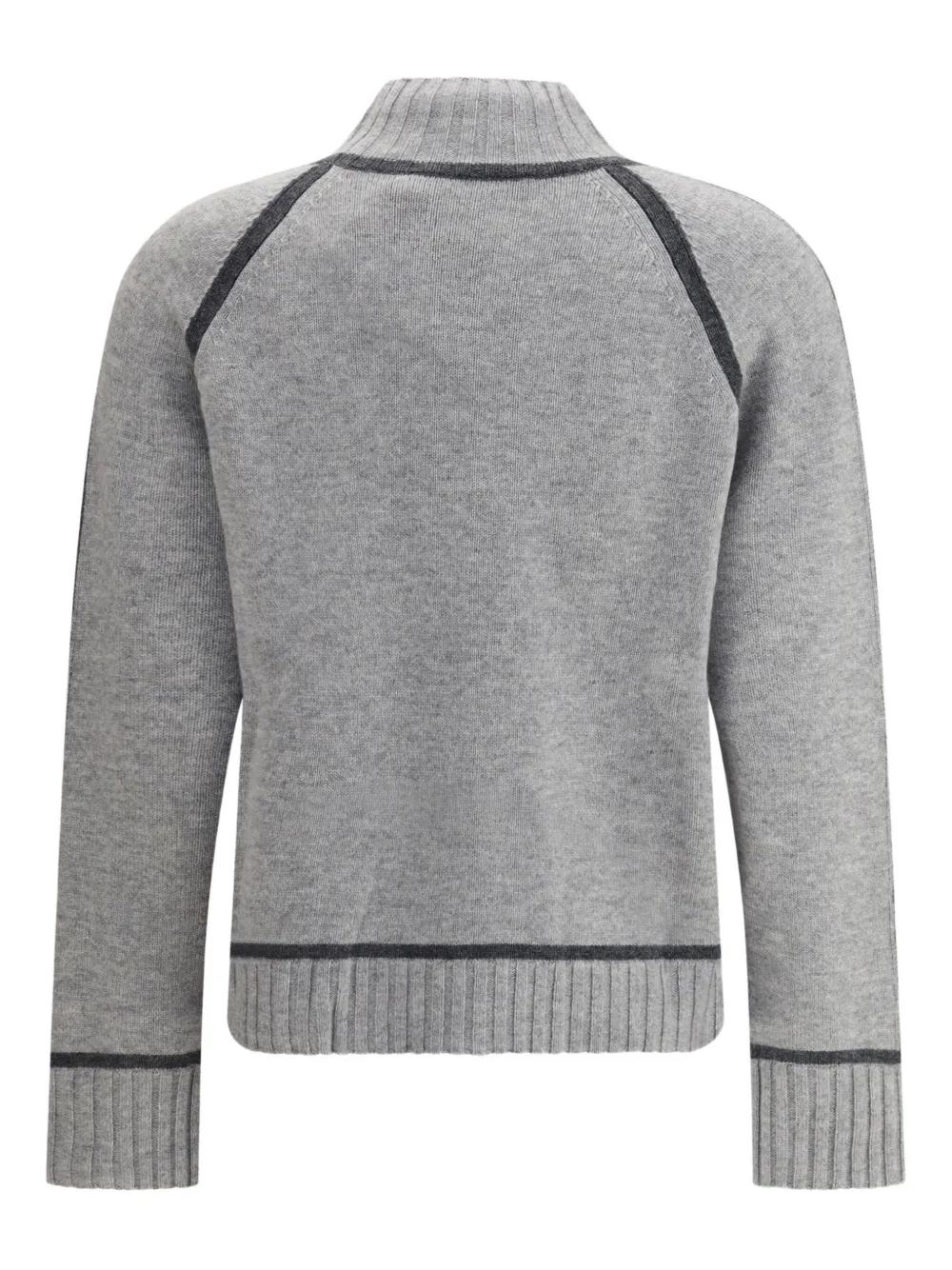grey high neck raglan sleeves ribbed edges ribbed hem ribbed cuffs