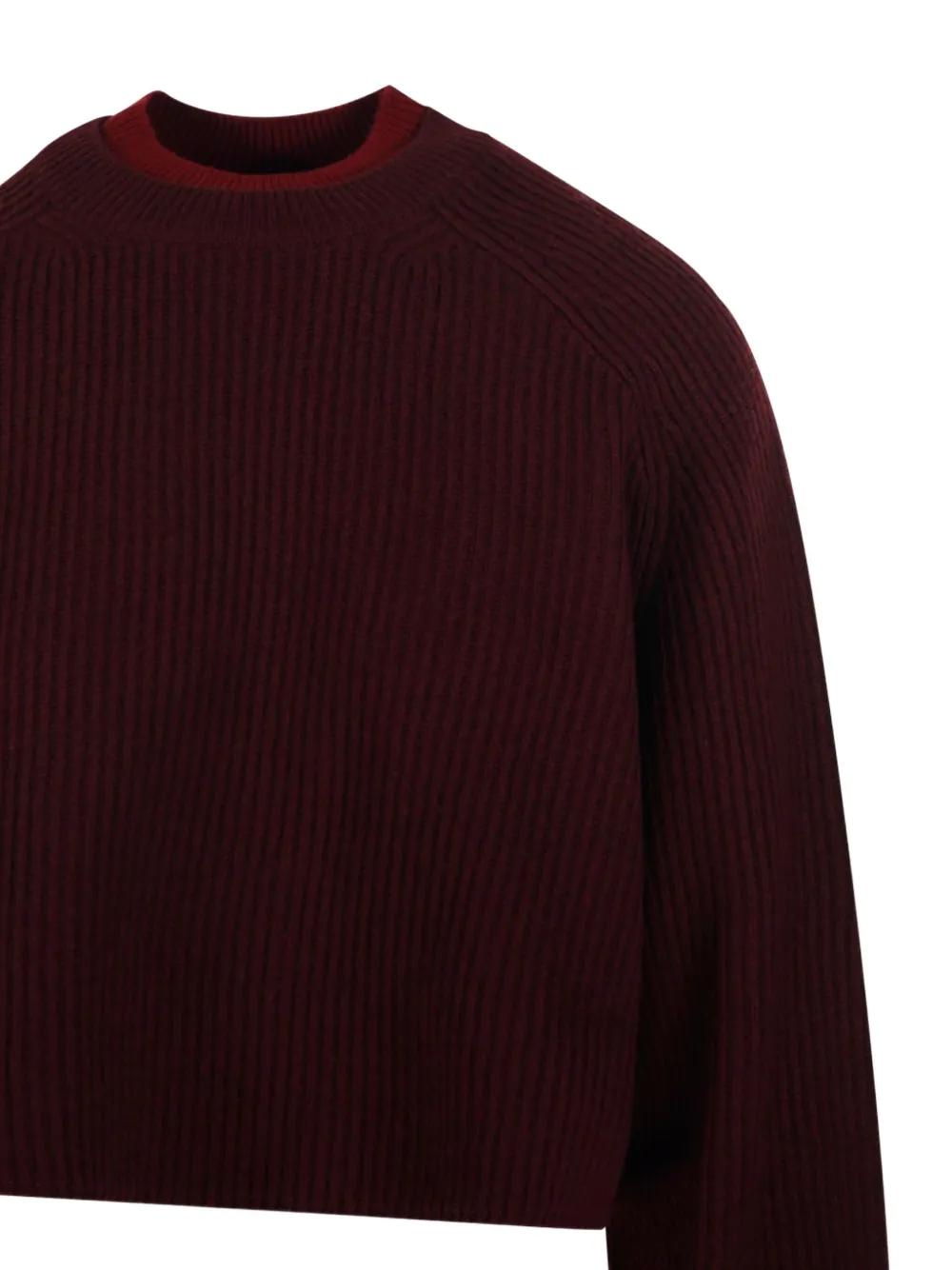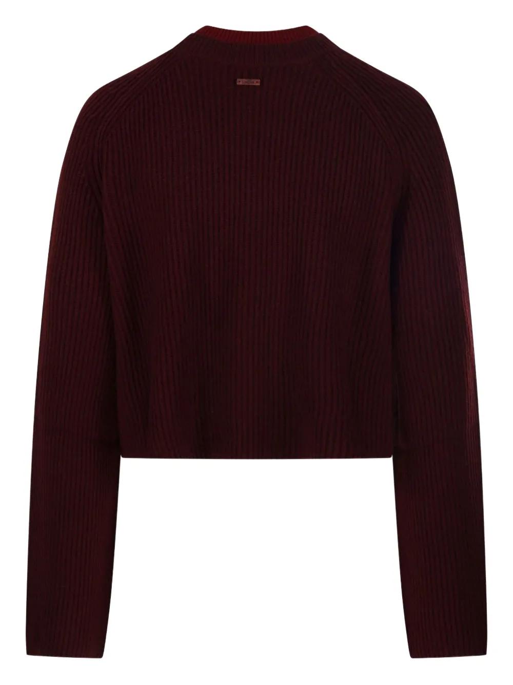 burgundy ribbed texture high neck long sleeves back zip closure wool cashmere blend