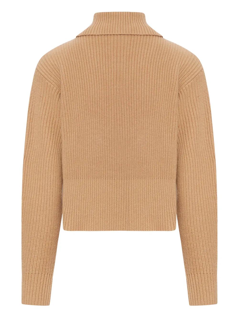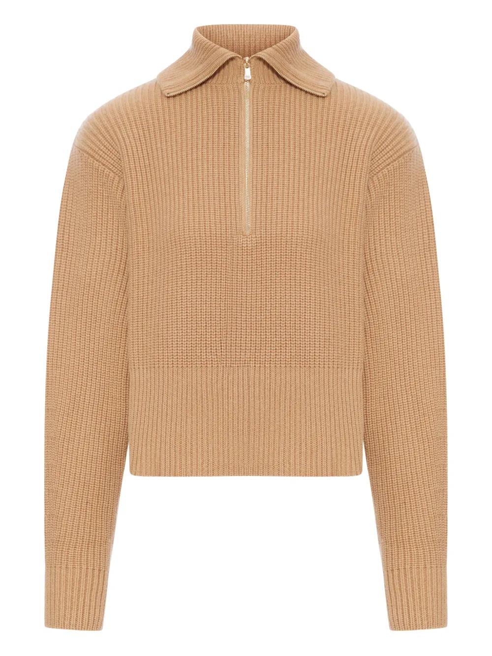 camel ribbed knit half zip fastening long sleeves wool