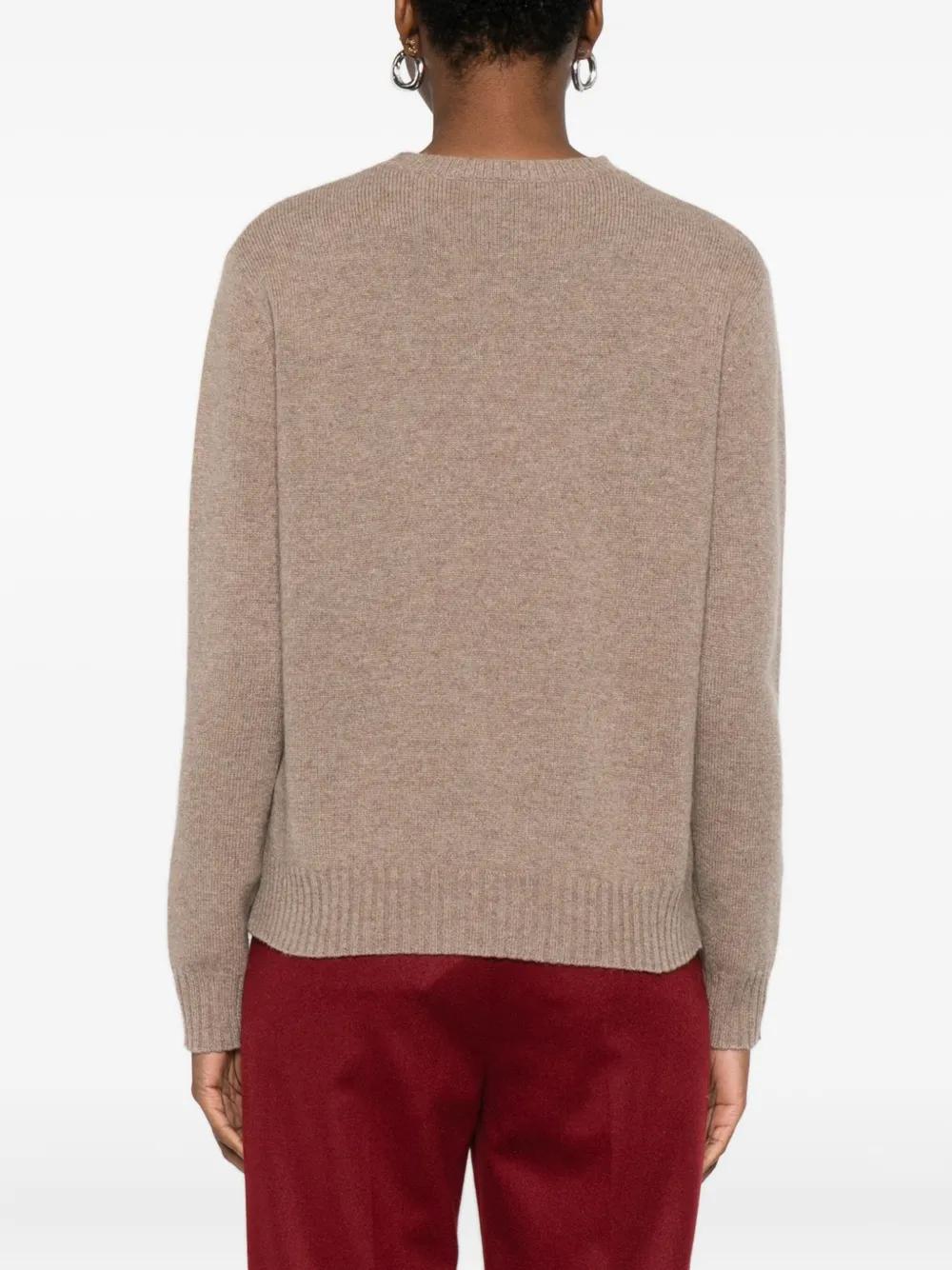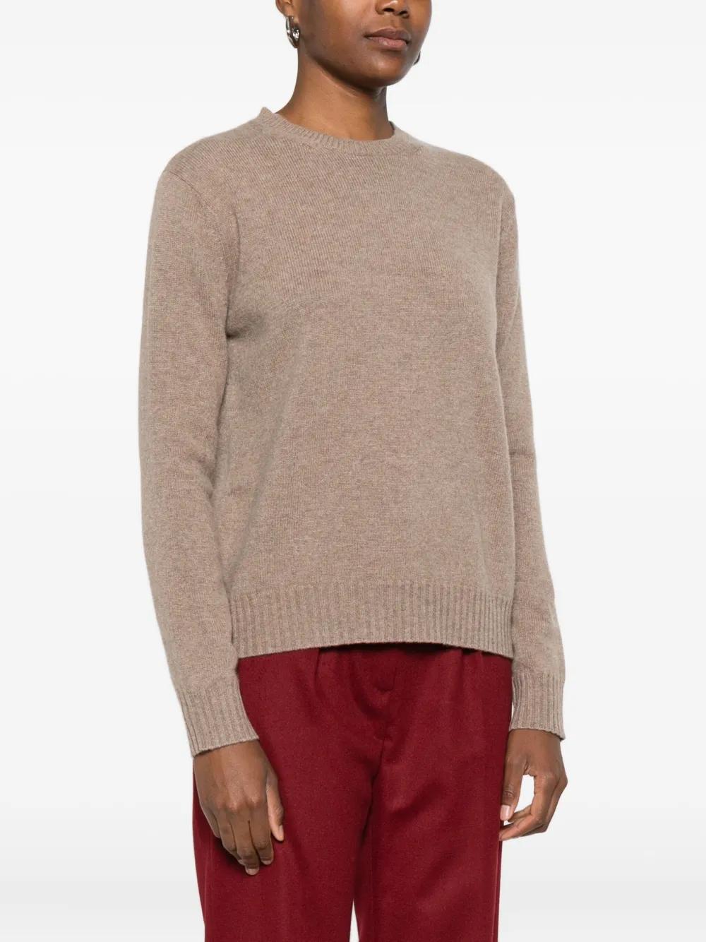 light brown cashmere ribbed cuffs ribbed hem round neck long sleeves