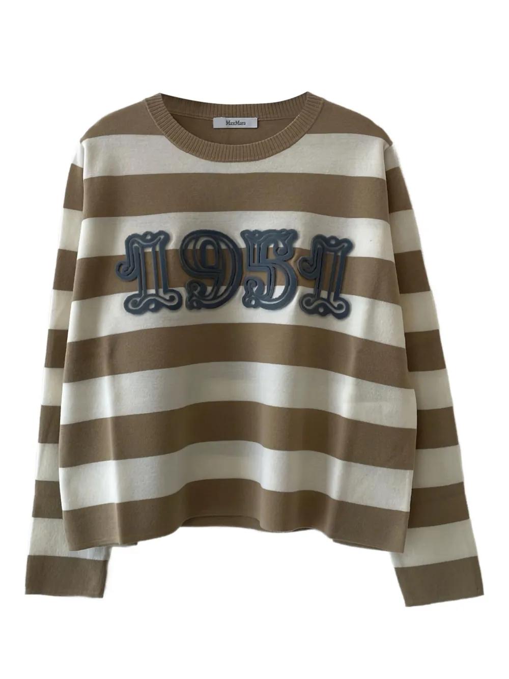 sand white brown stripes crew neck long sleeves ribbed cuffs