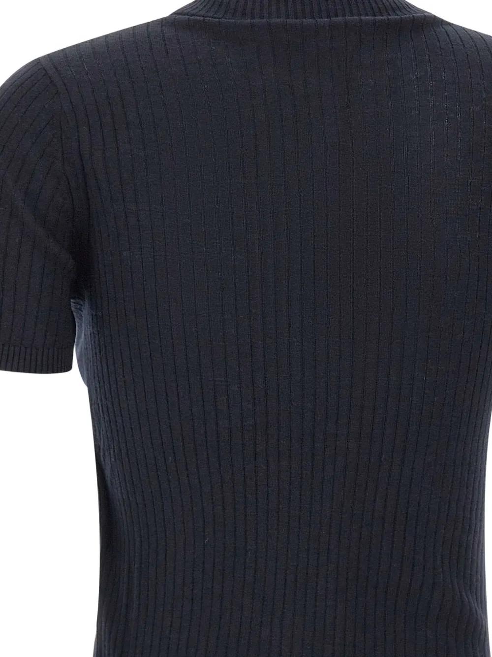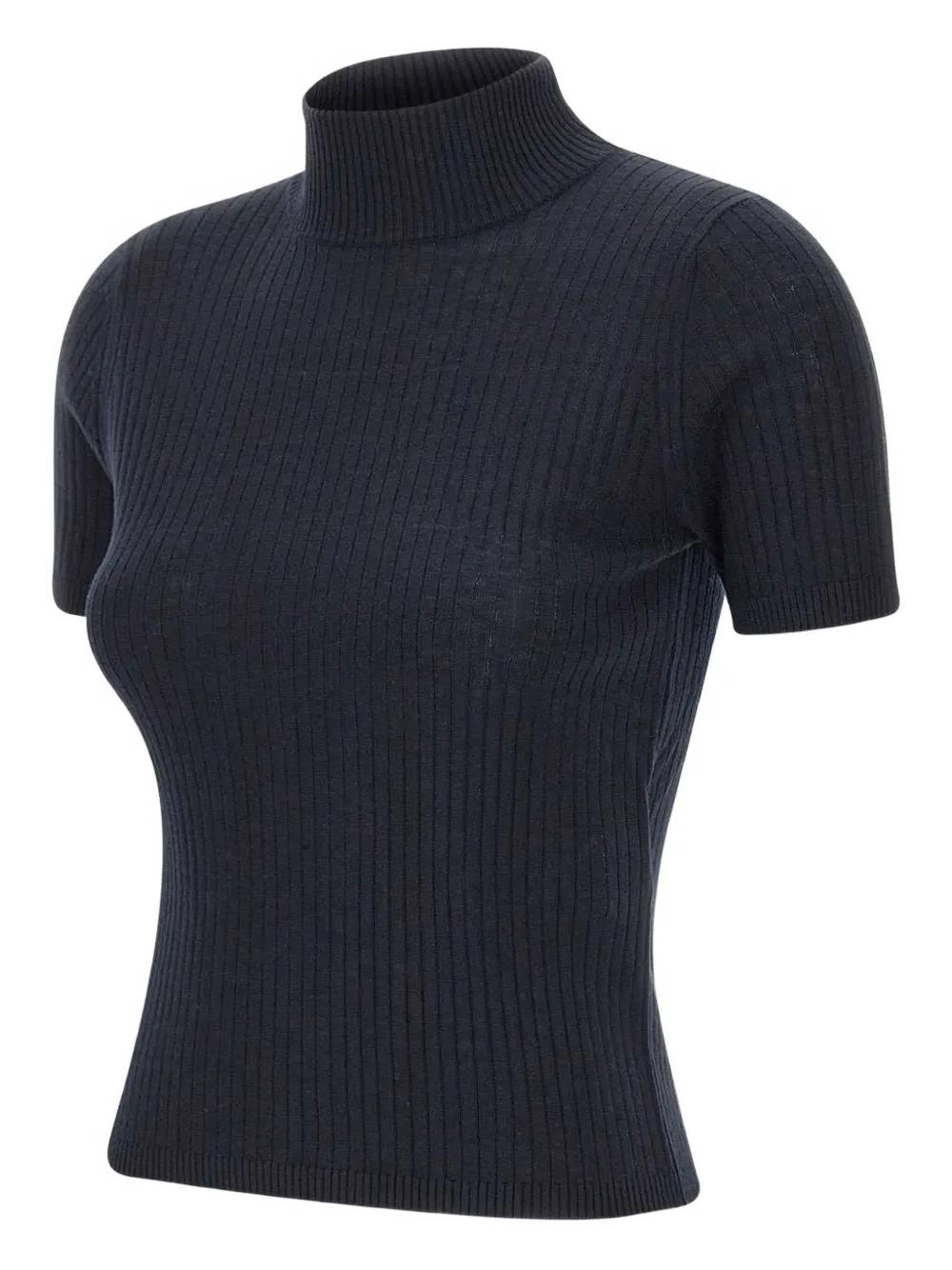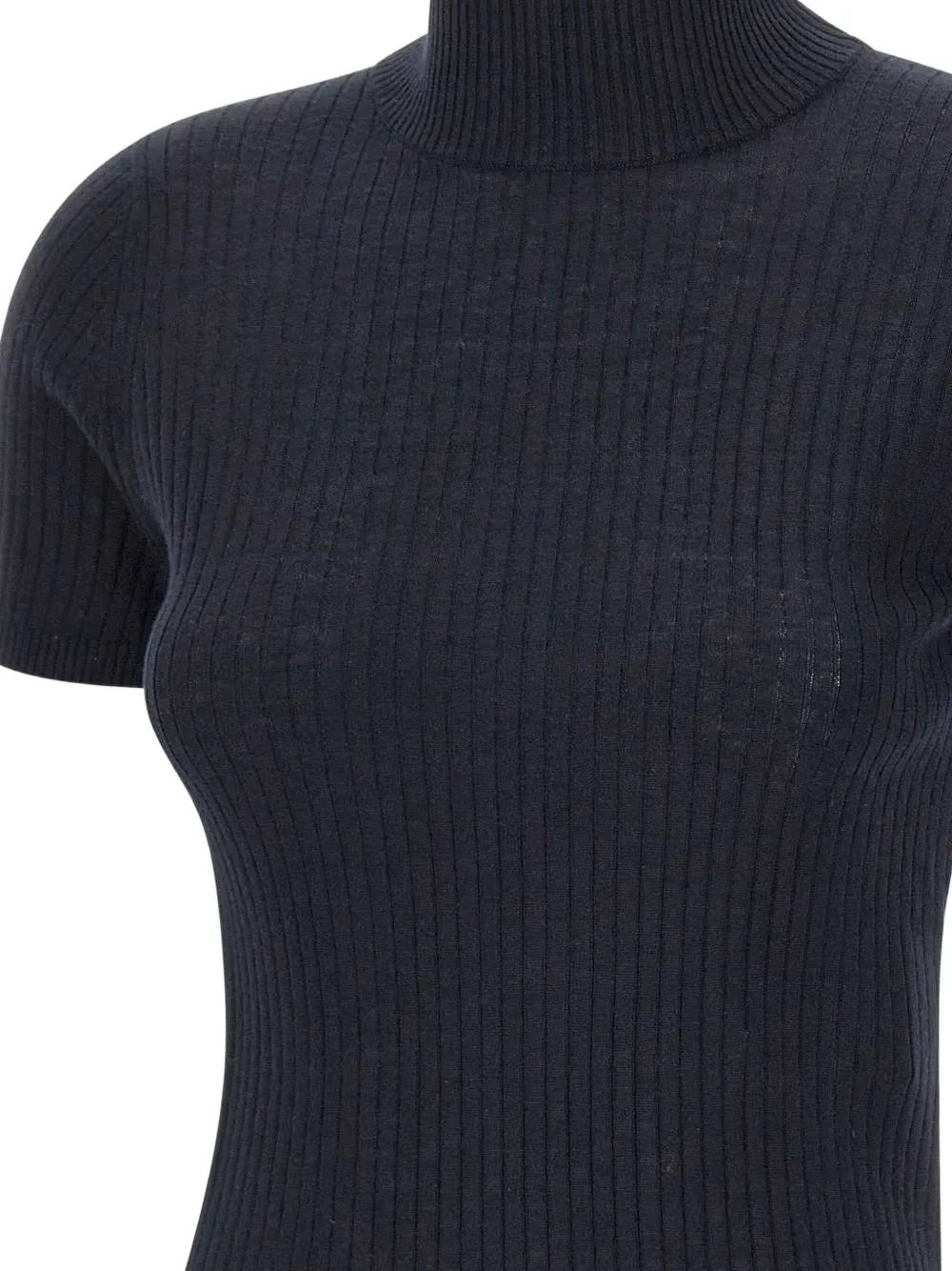 black ribbed texture turtleneck short sleeves silk-wool blend