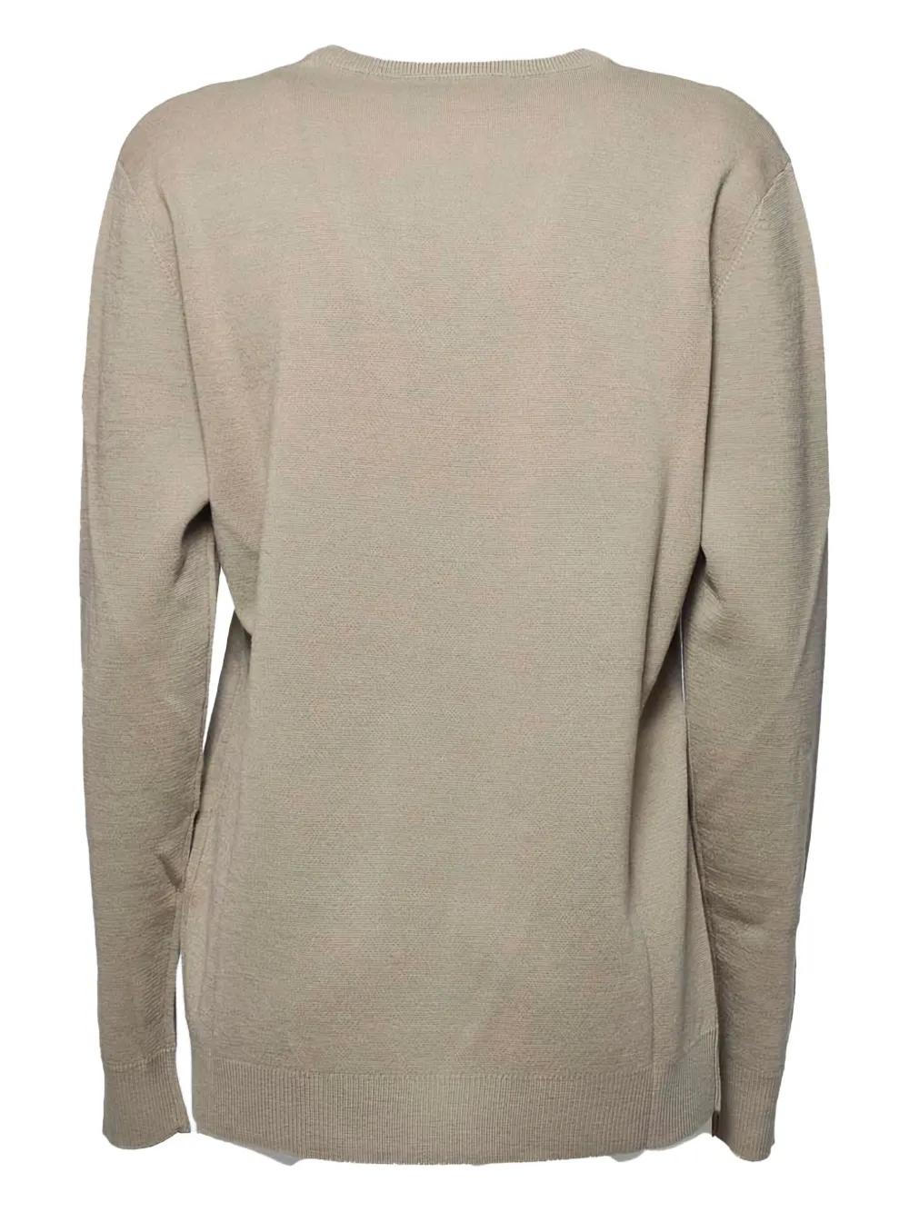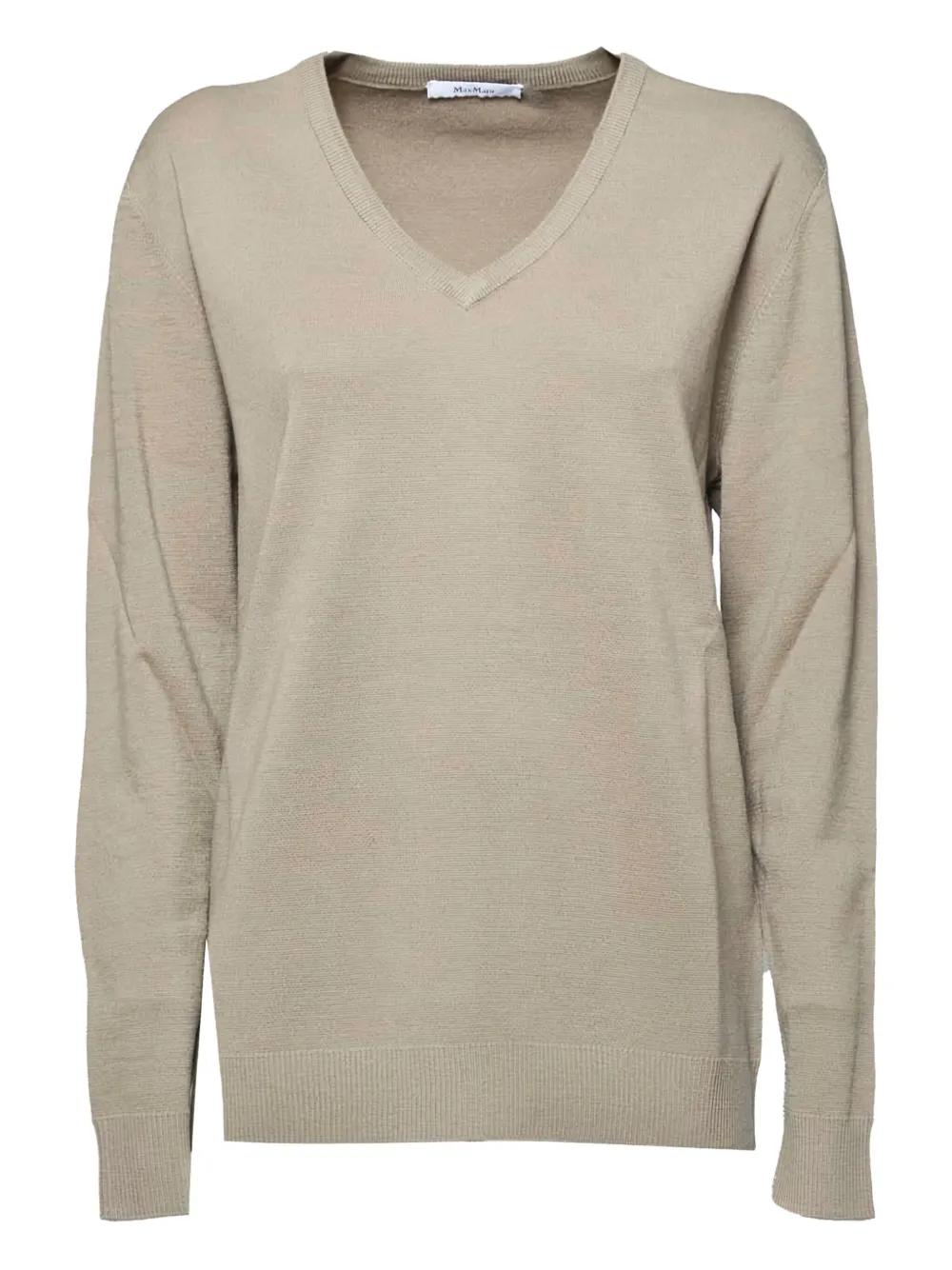 light beige V-neckline dropped shoulder seams long sleeves ribbed cuffs and hem
