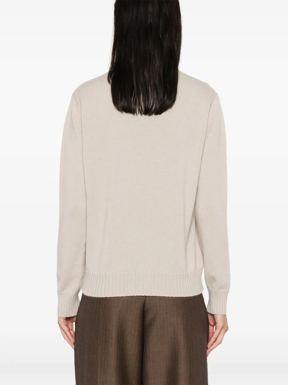light beige cashmere knitted construction crew neck long sleeves ribbed cuffs and hem